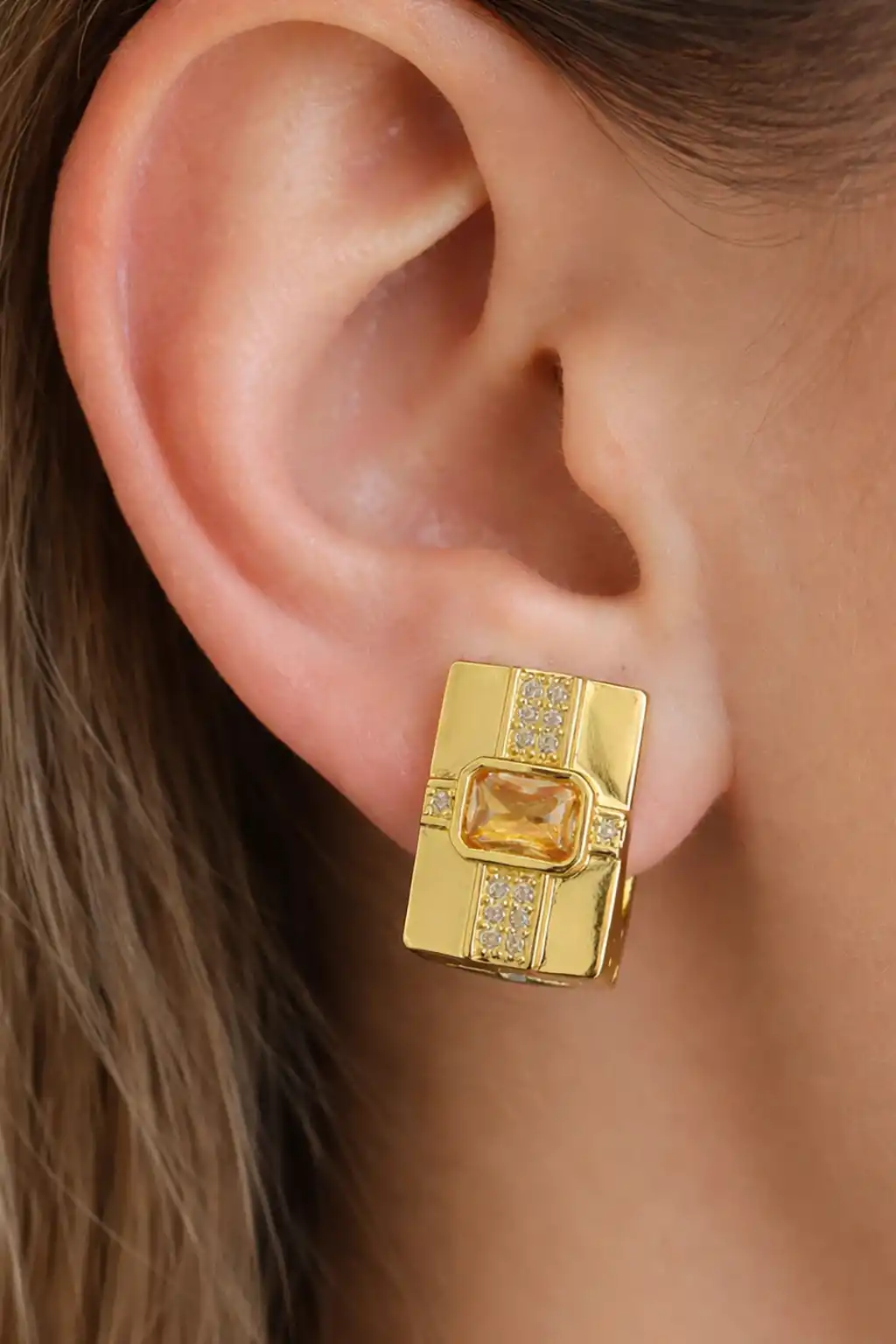 Altın Renk Taş Detaylı 14k Altın Kaplama Küpe (Çift)