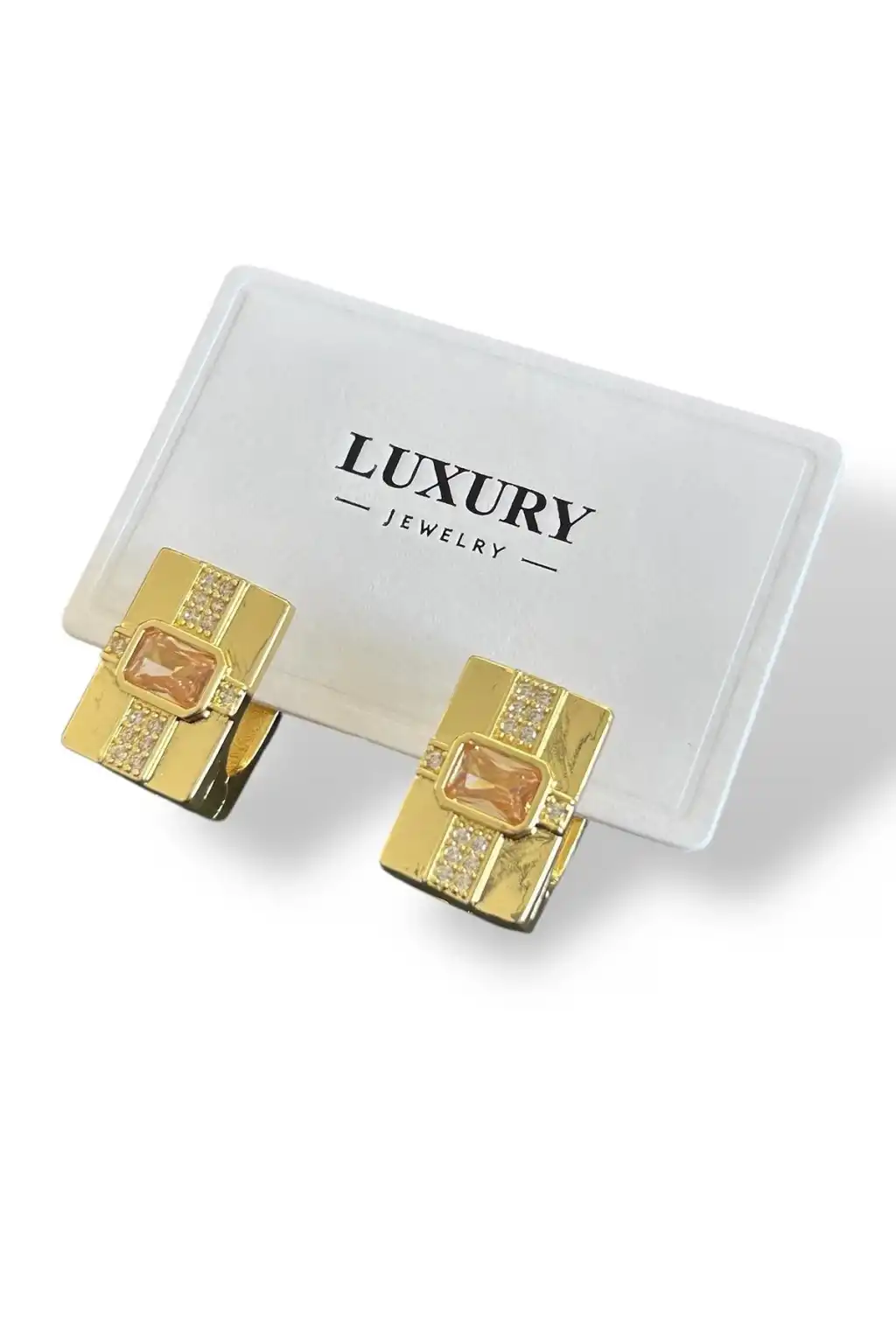 Altın Renk 14K Altın Kaplama Taşlı Küpe (Çift)