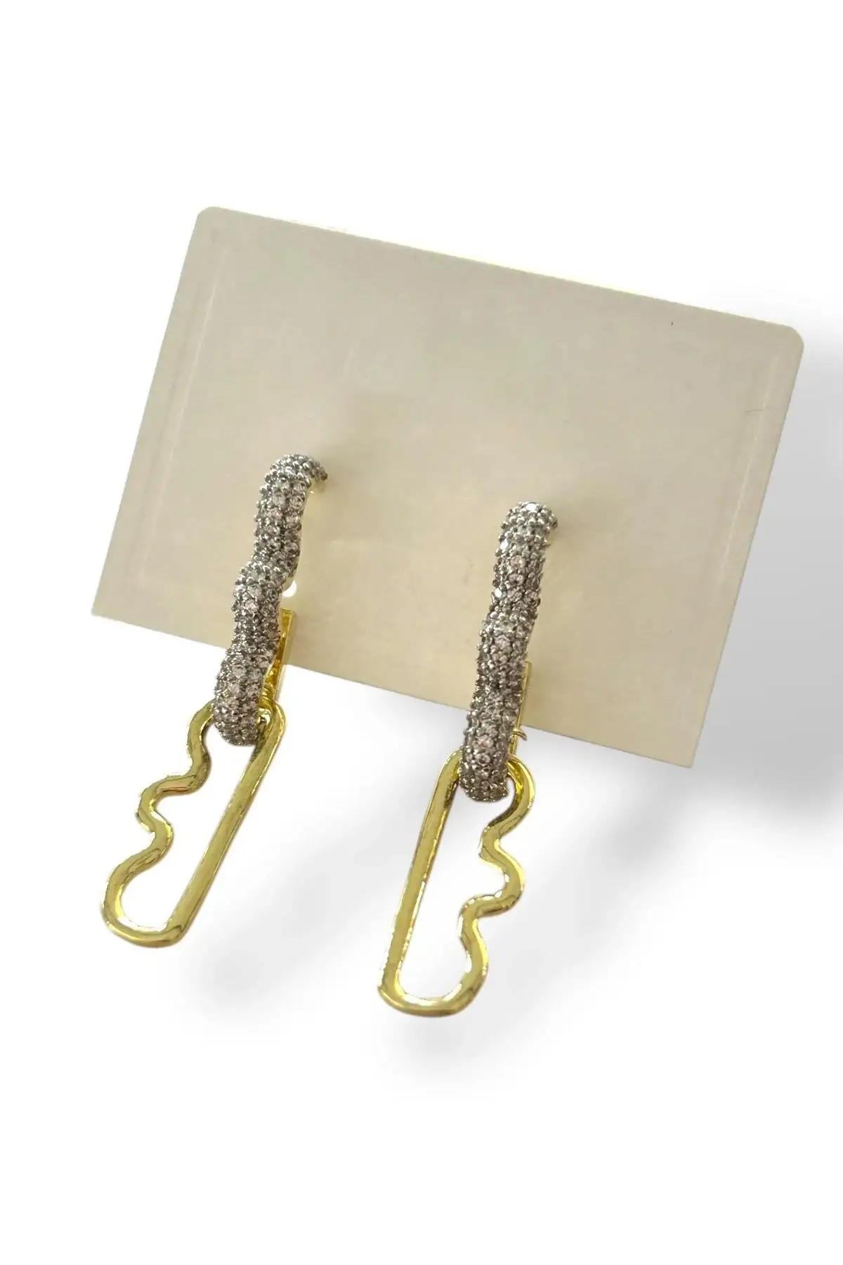Altın Renk Taş Detaylı 14K Altın Kaplama TX Küpe (Çift)