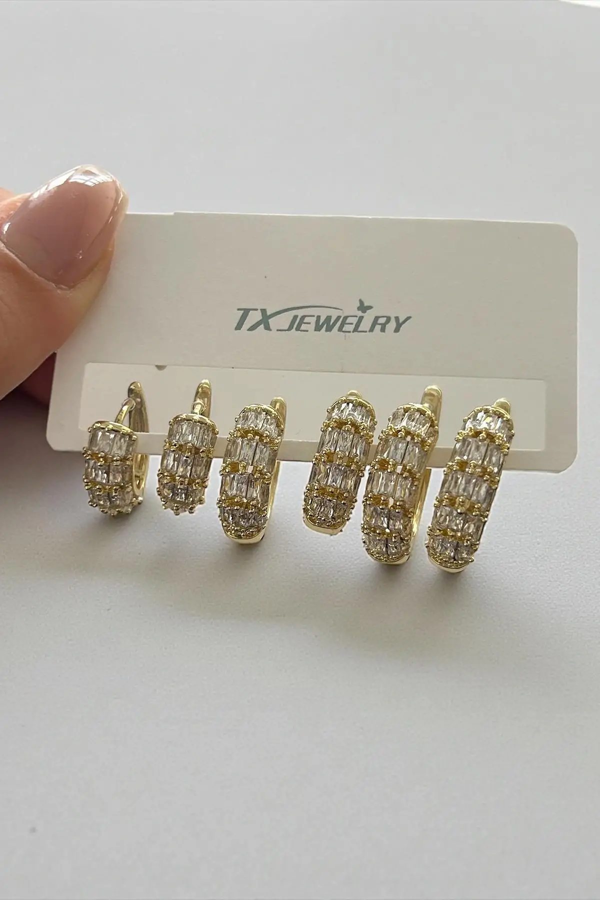 Gümüş Renk Taş Detaylı 14K Altın Kaplama TX 6'lı Halka Küpe Set