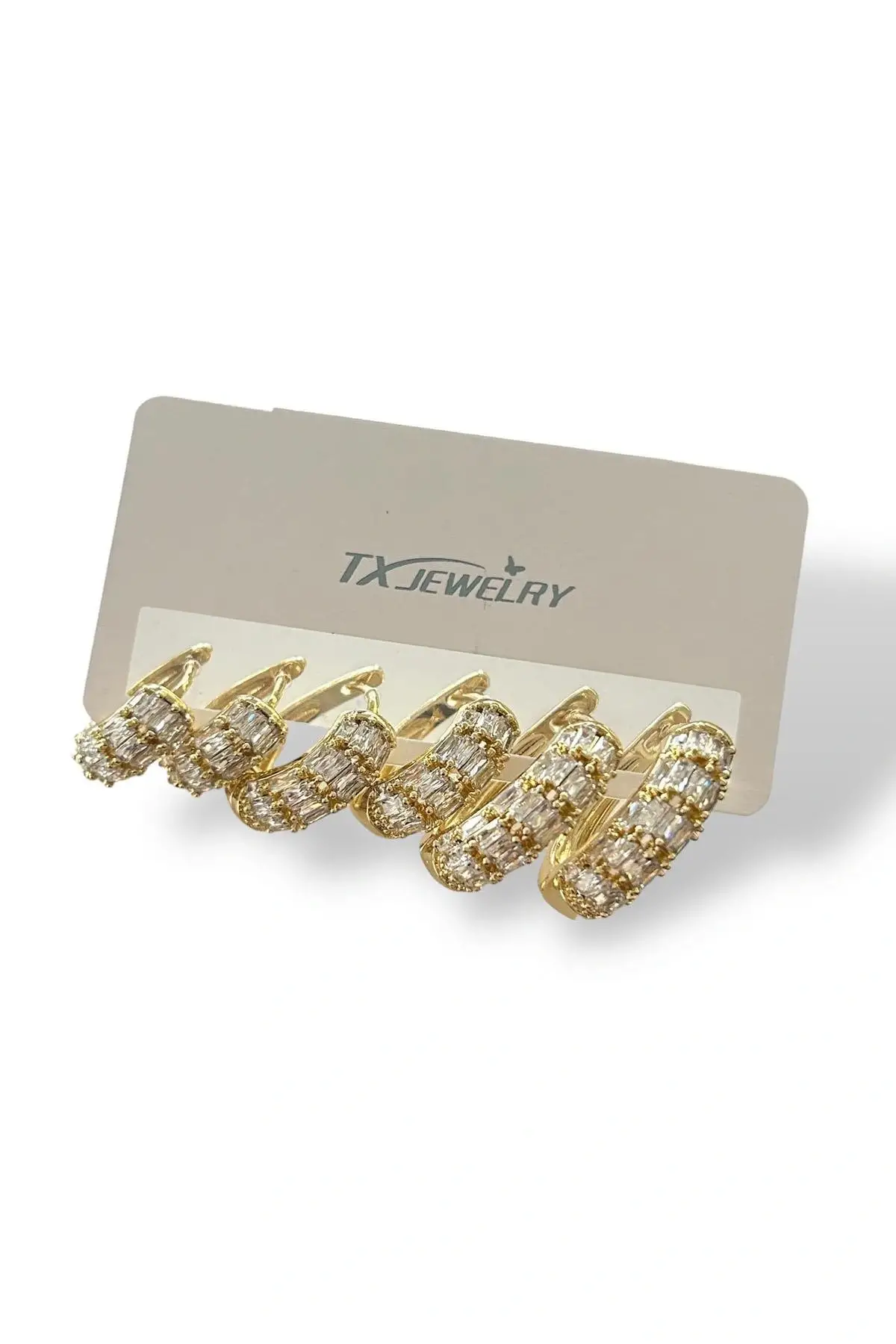 Altın Renk Taş Detaylı 14K Altın Kaplama TX 6'lı Halka Küpe Set