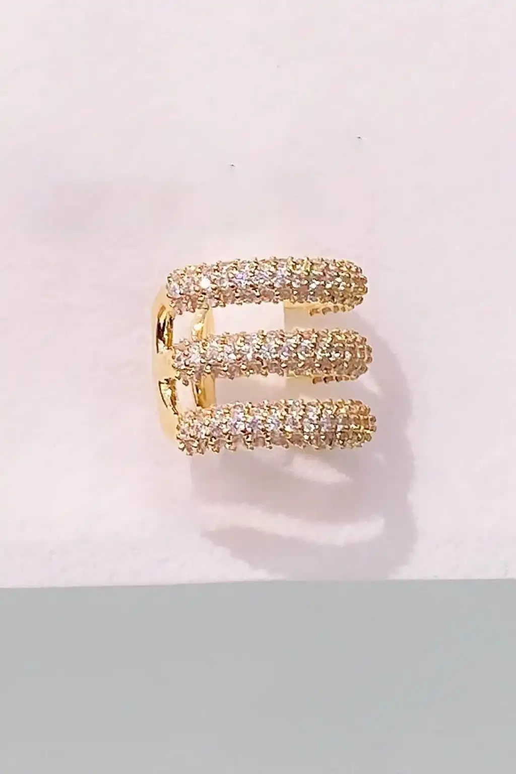 Altın Renk Taş Detaylı 14K Altın Kaplama TX Ear Cuff (Tek)