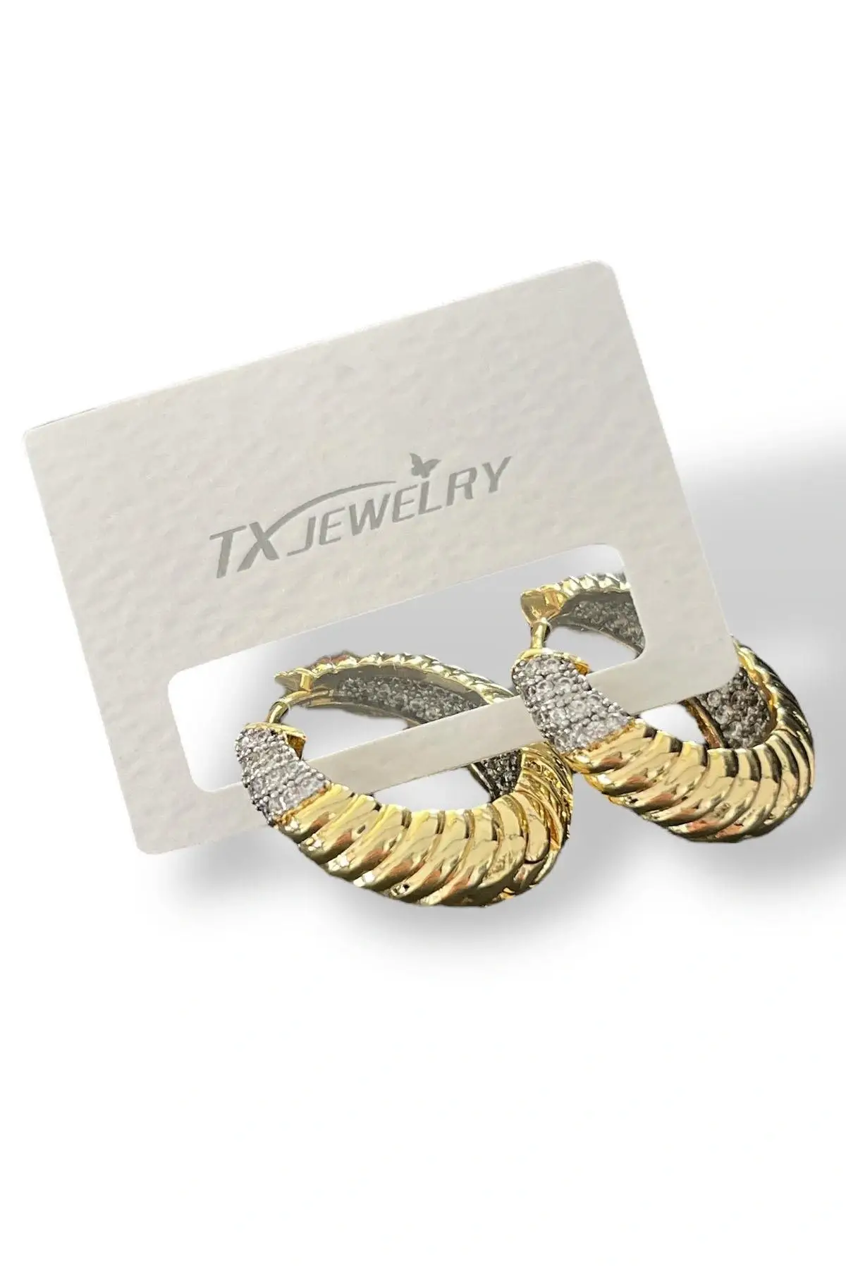 Altın Renk Taş Detaylı 14K Altın Kaplama TX Halka Küpe (Çift)