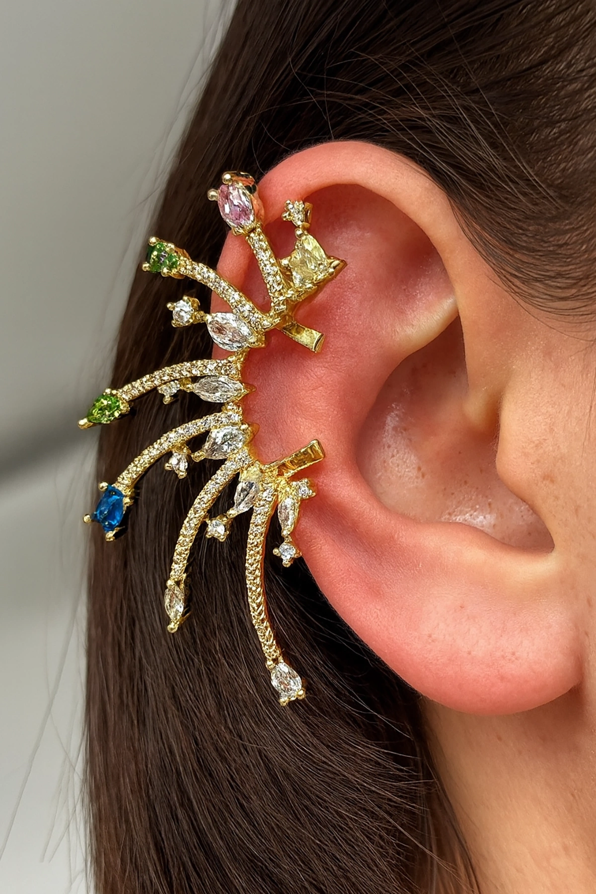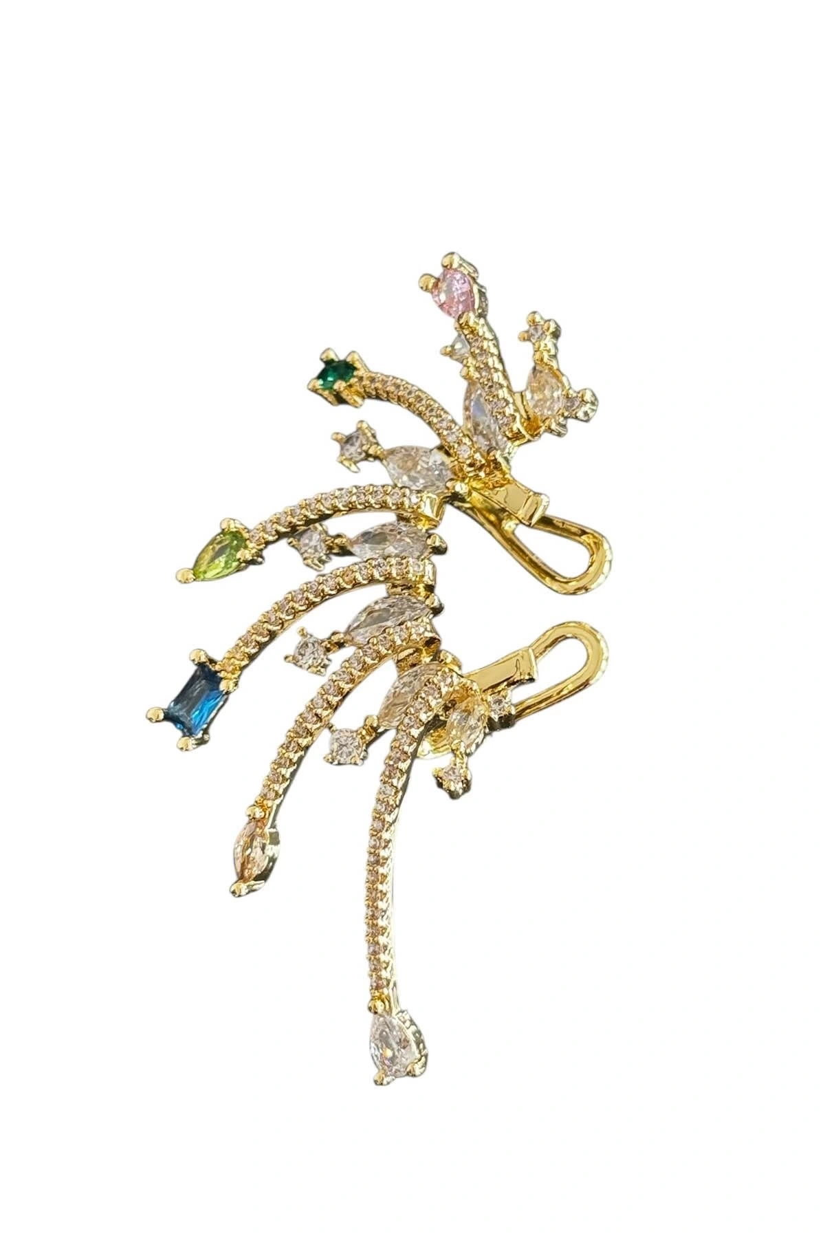 Altın Renk Taş Detaylı 14K Altın Kaplama TX Kulak Aksesuarı (Tek)