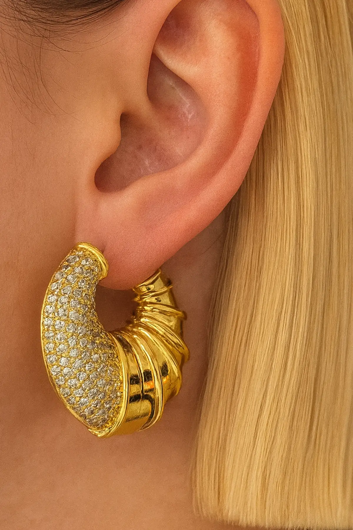Altın Renk Taş Detaylı 14K Altın Kaplama TX Küpe (Çift)