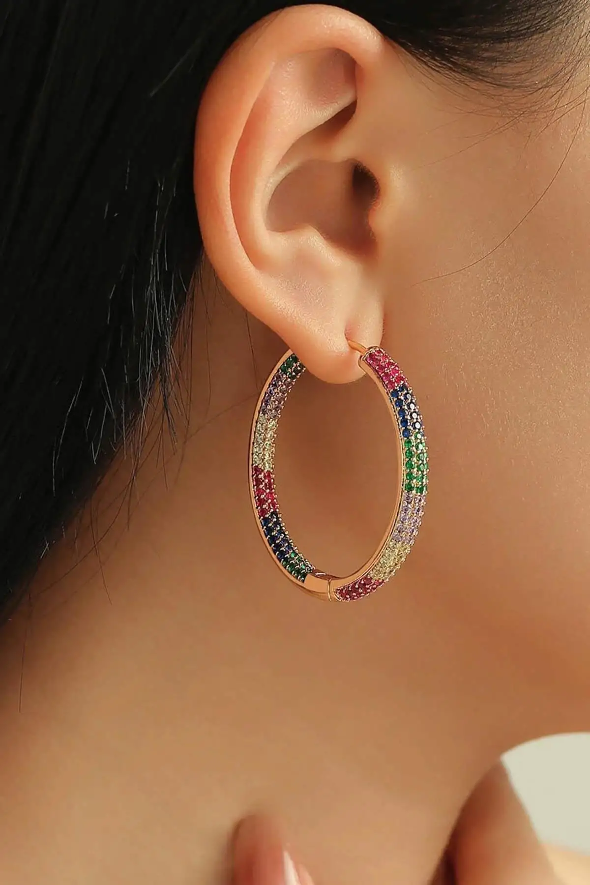 Gümüş Renk Taş Detaylı 14K Altın Kaplama TX Küpe (Çift)