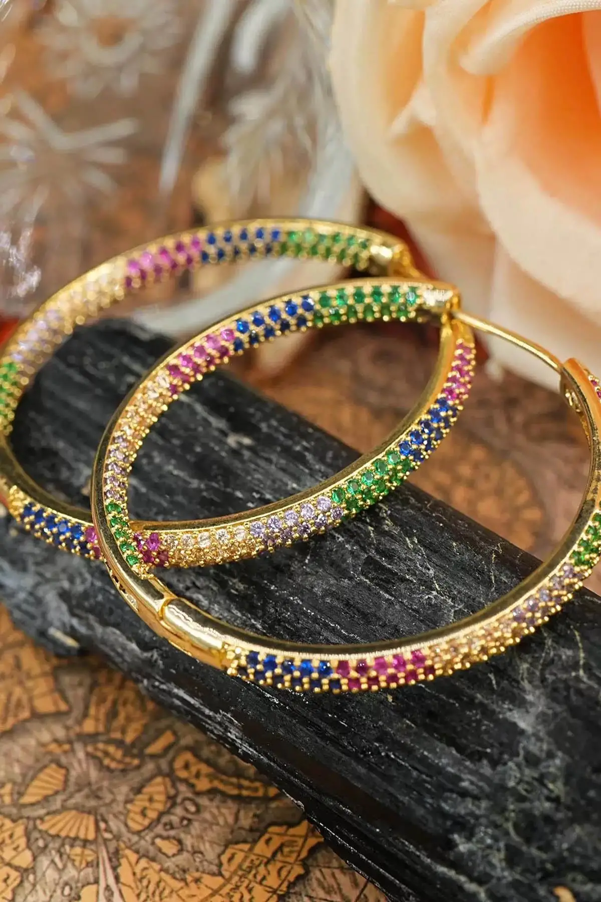 Altın Renk Taş Detaylı 14K Altın Kaplama TX Küpe (Çift)