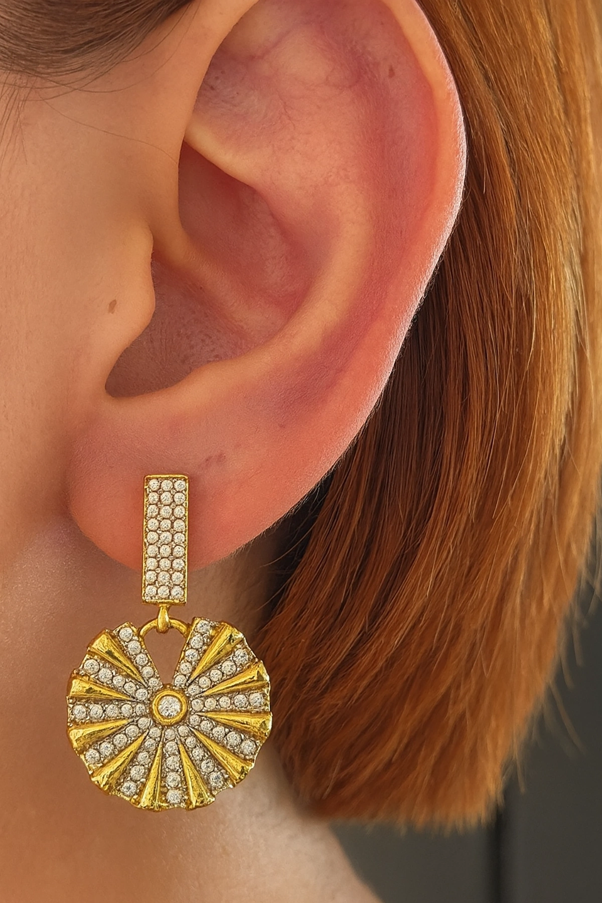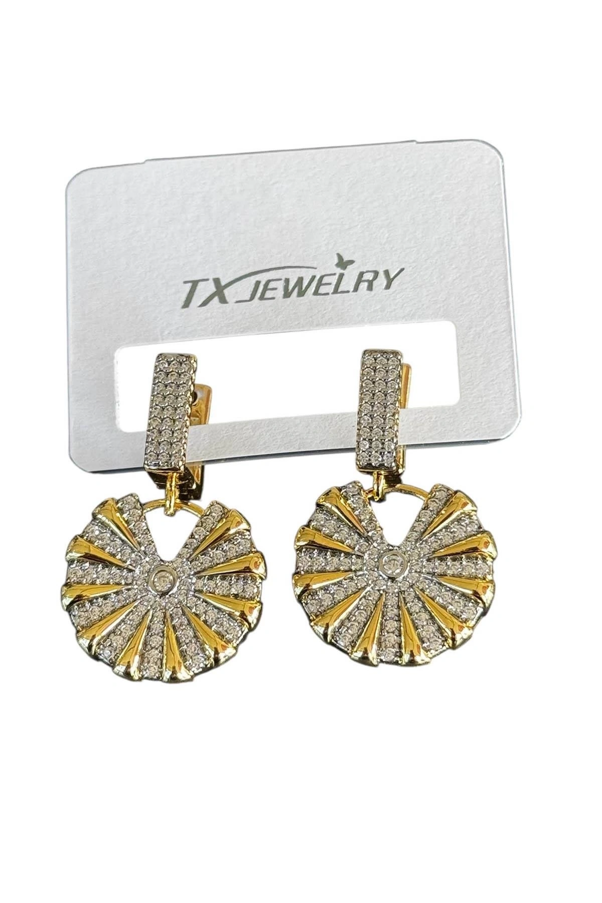 Altın Renk Taş Detaylı 14K Altın Kaplama TX Küpe (Çift)