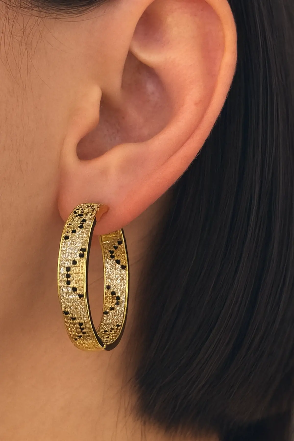 Altın Renk Leopar Detaylı Küpe (Çift)