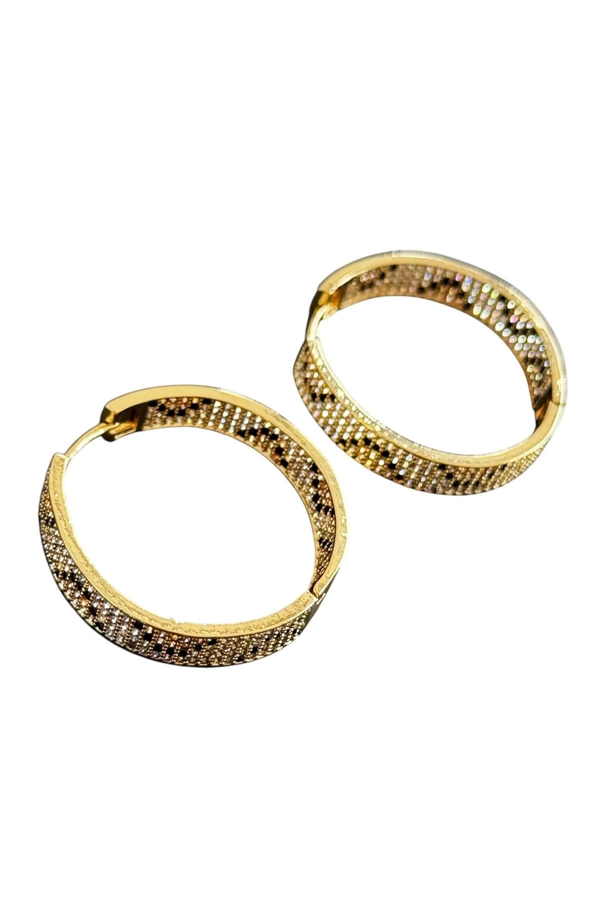 Altın Renk Taş Detaylı 14K Altın Kaplama TX Küpe (Çift)