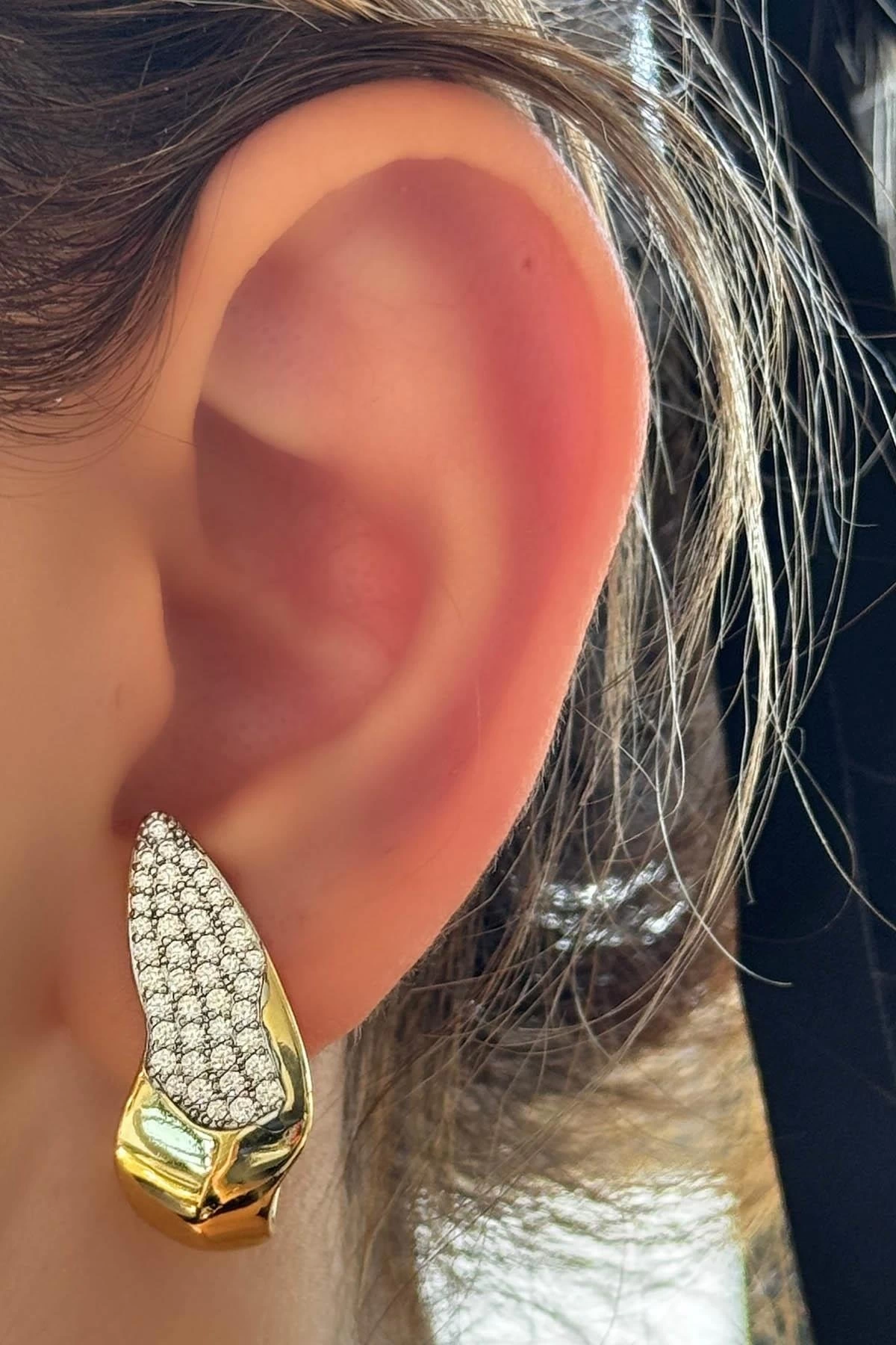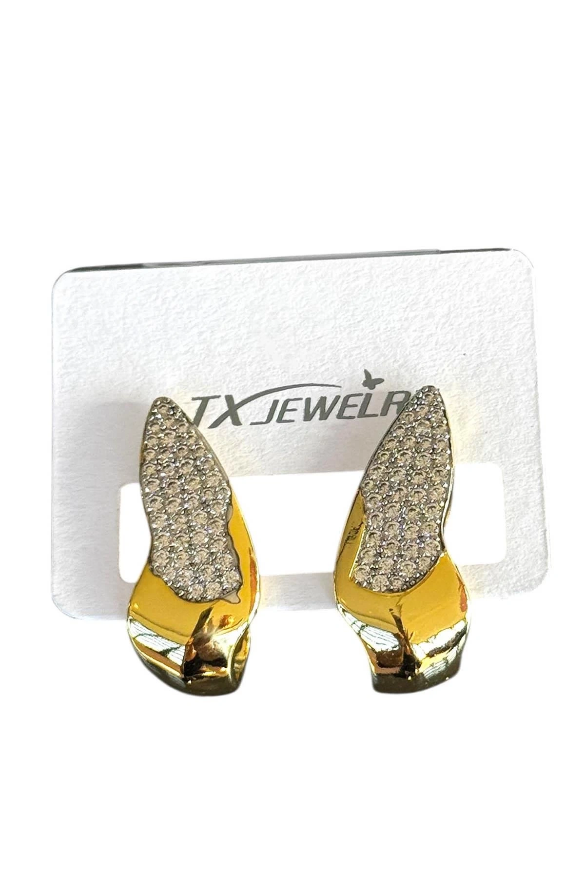 Altın Renk Taş Detaylı 14K Altın Kaplama TX Küpe (Çift)