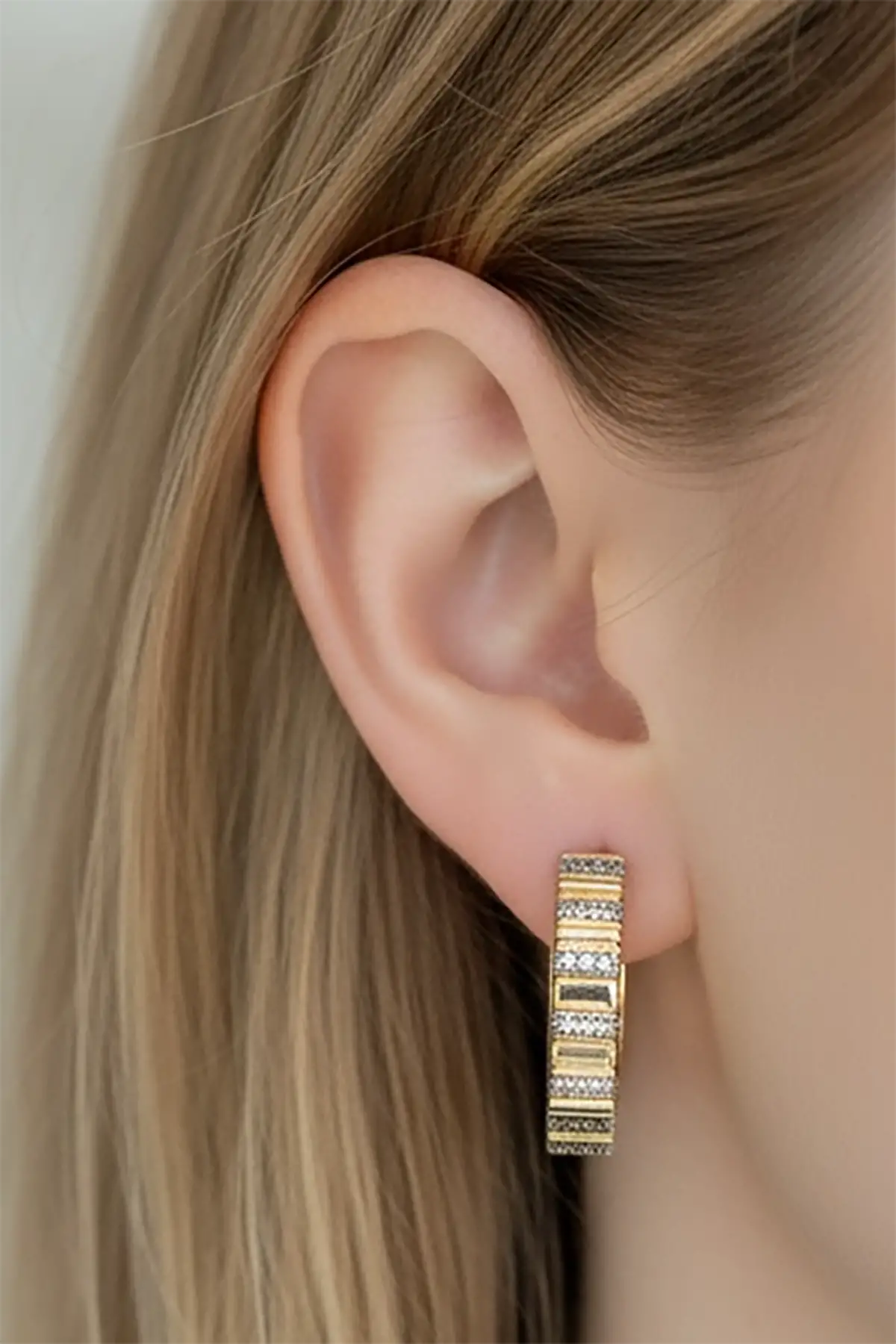 Altın Renk Taş Detaylı 14K Altın Kaplama TX Halka Küpe (Çift)