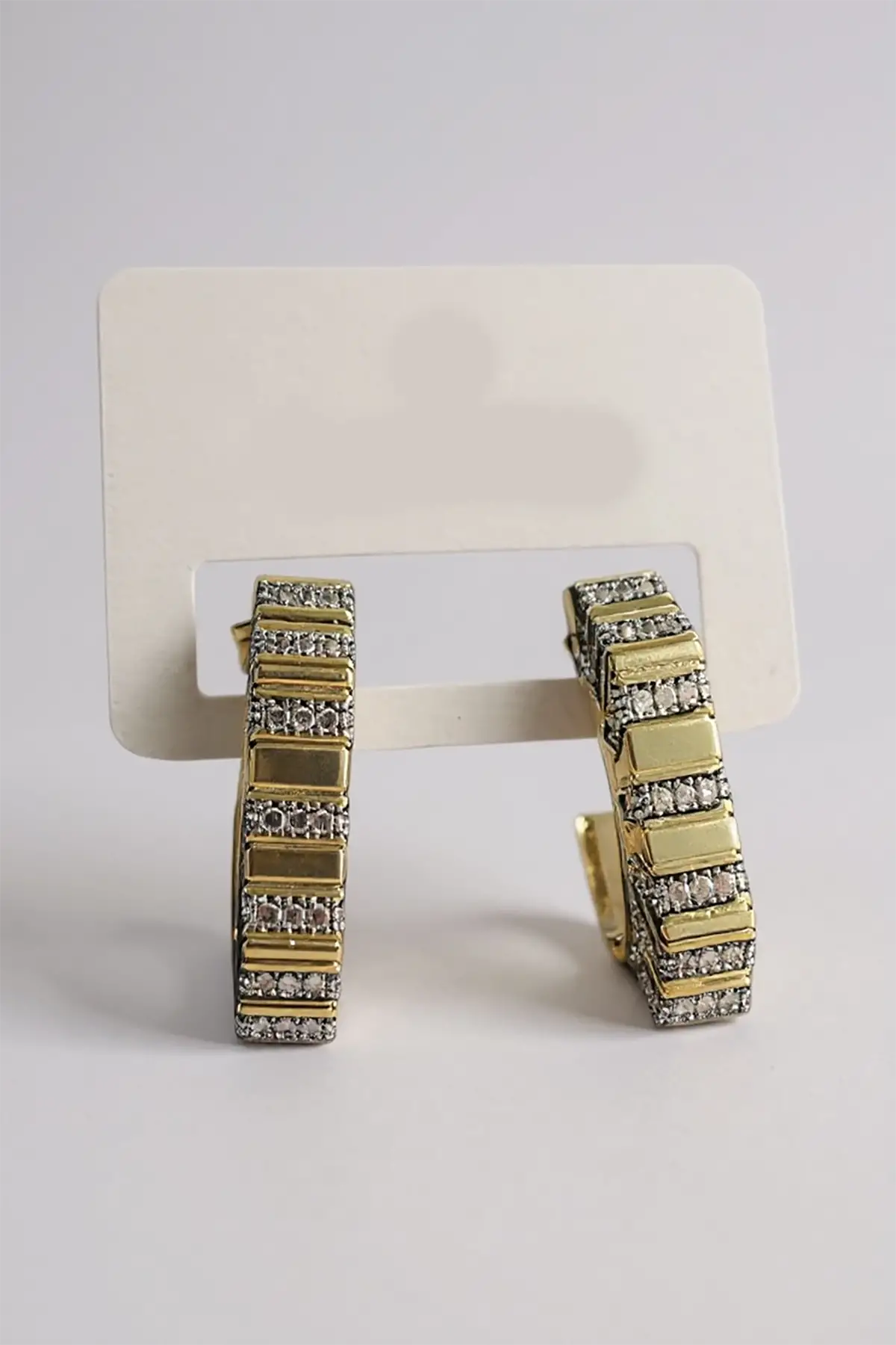 Altın Renk Taş Detaylı Küpe (Çift)