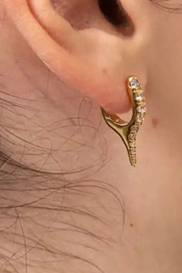 Altın Renk Taş Detaylı 14K Altın Kaplama TX Halka Küpe (Çift)