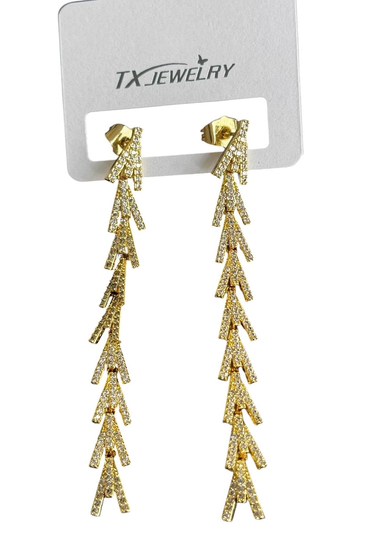 Altın Renk Taş Detaylı 14K Altın Kaplama TX Küpe (Çift)