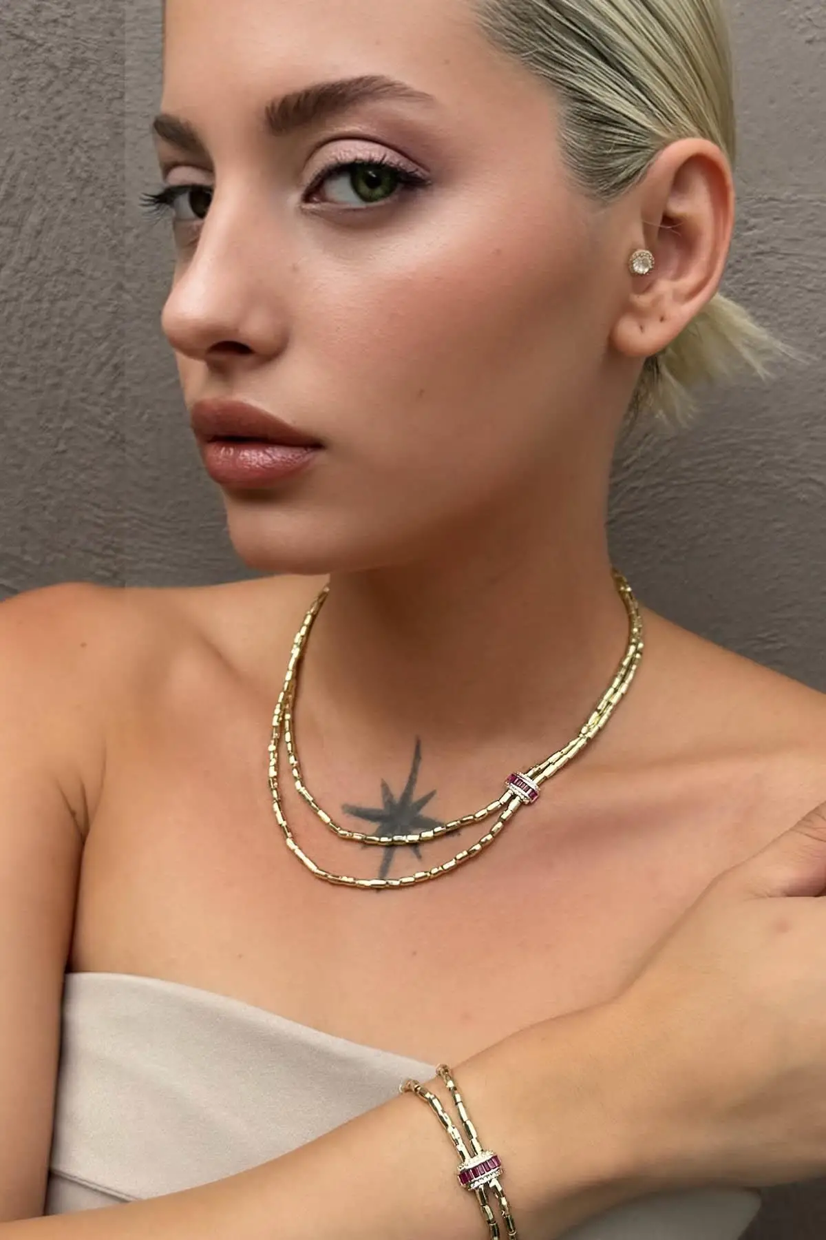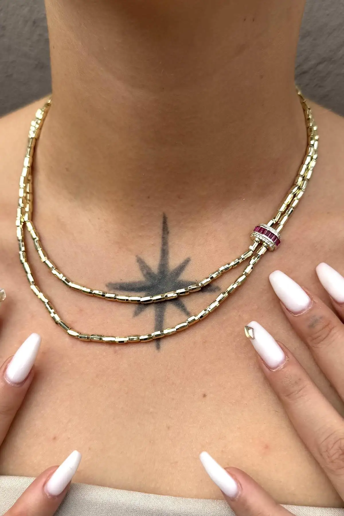Altın Renk Taş Detaylı 14K Altın Kaplama VİP Kolye