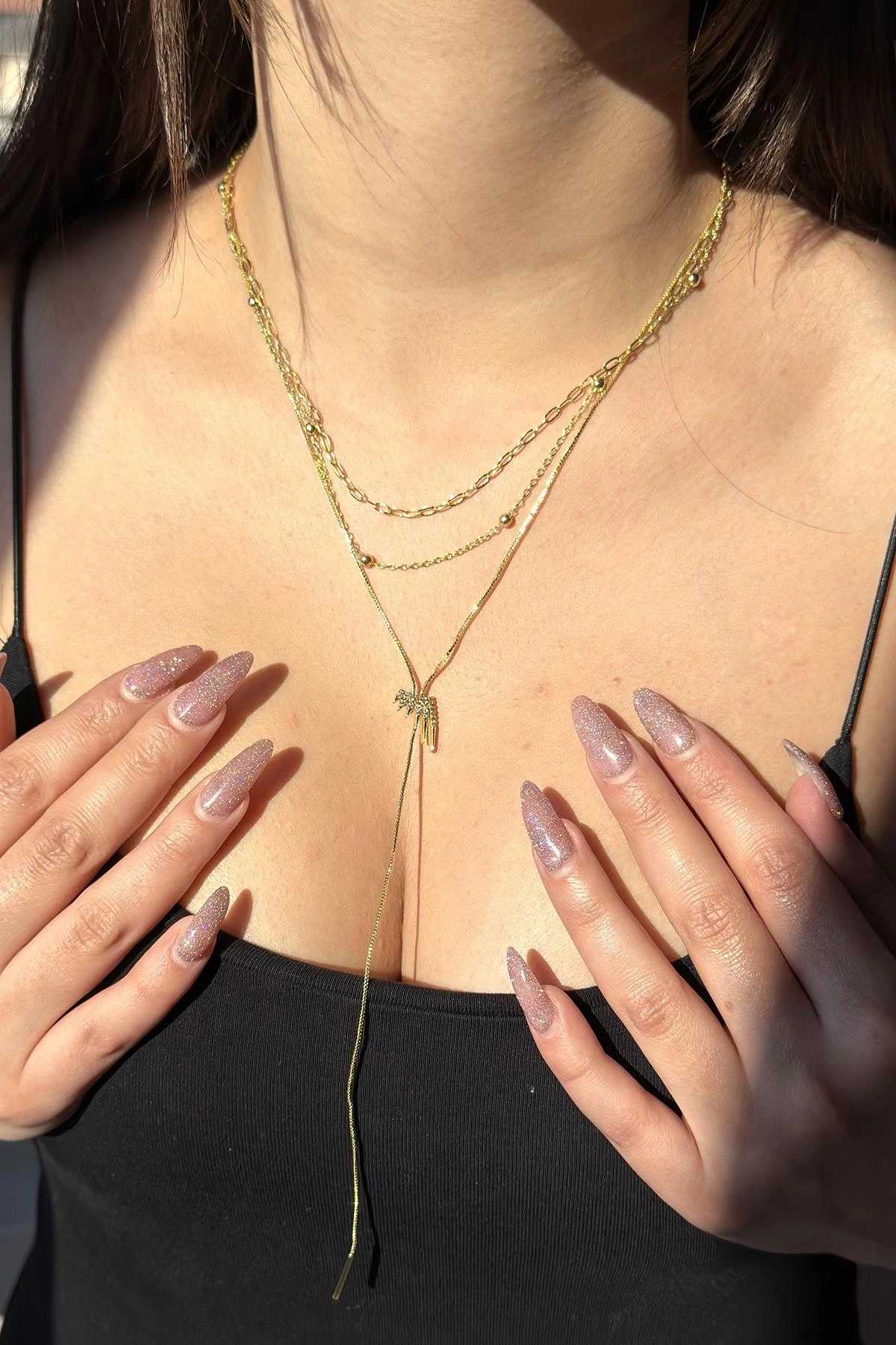 Altın Renk Taşlı 14K Altın Kaplama Y Kolye