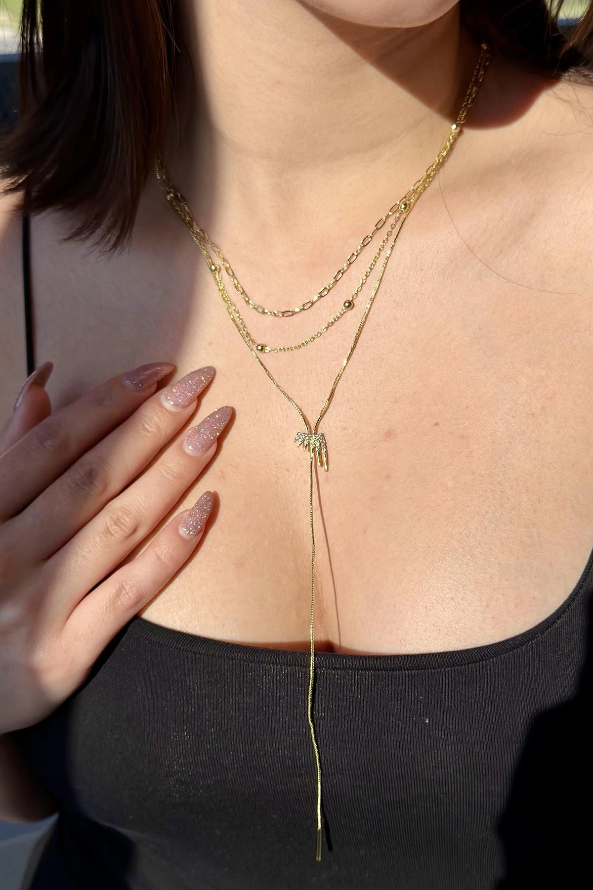 Altın Renk Taş Detaylı 14K Altın Kaplama VİP Y Kolye