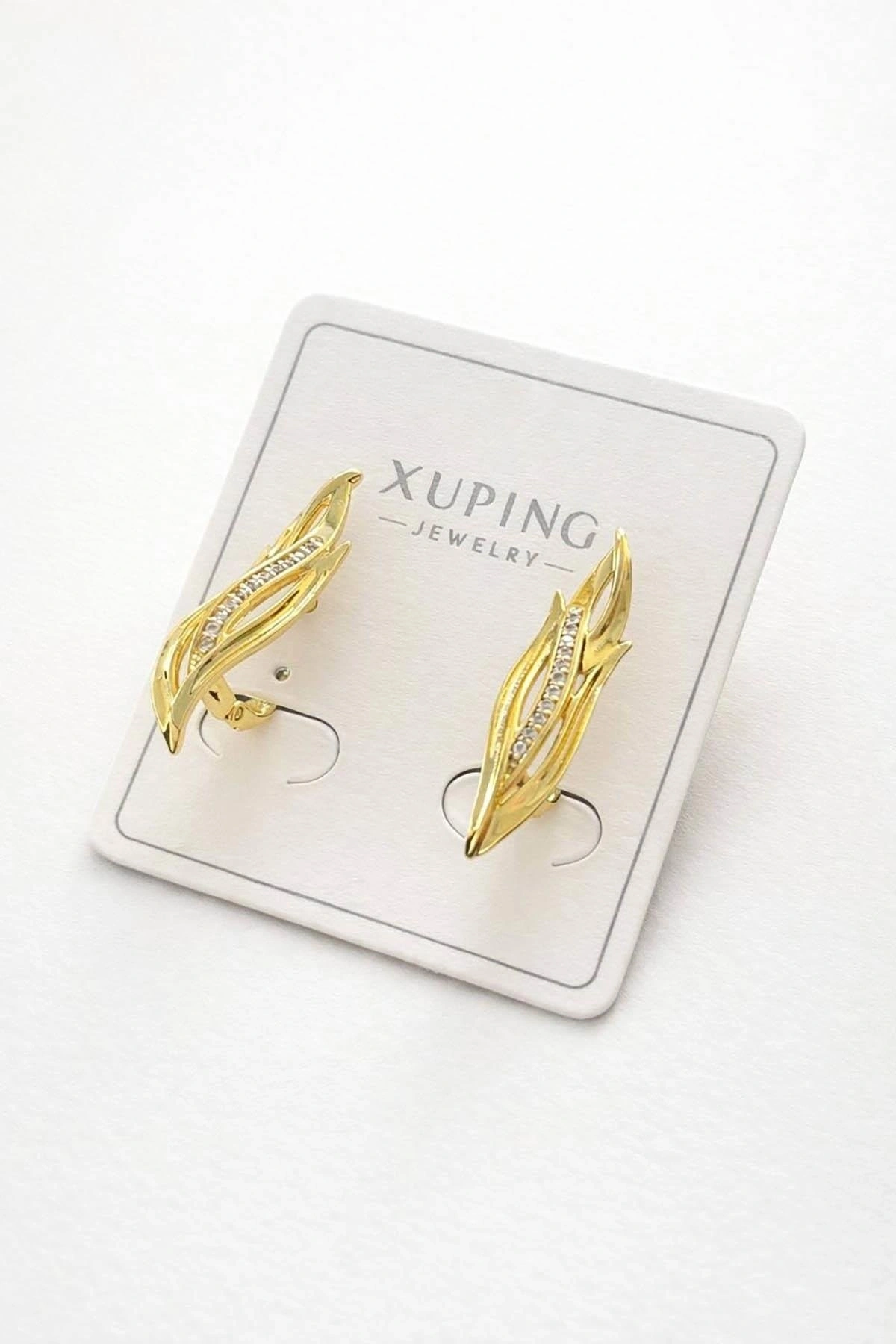 Altın Renk Taş Detaylı 14K Altın Kaplama Xuping Küpe (Çift)