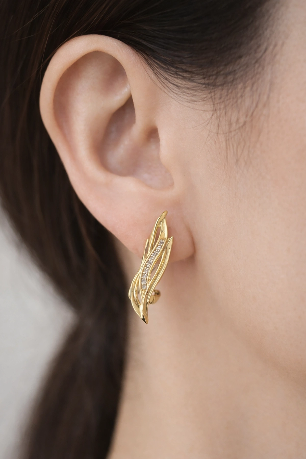 Altın Renk Taş Detaylı 14K Altın Kaplama Xuping Küpe (Çift)
