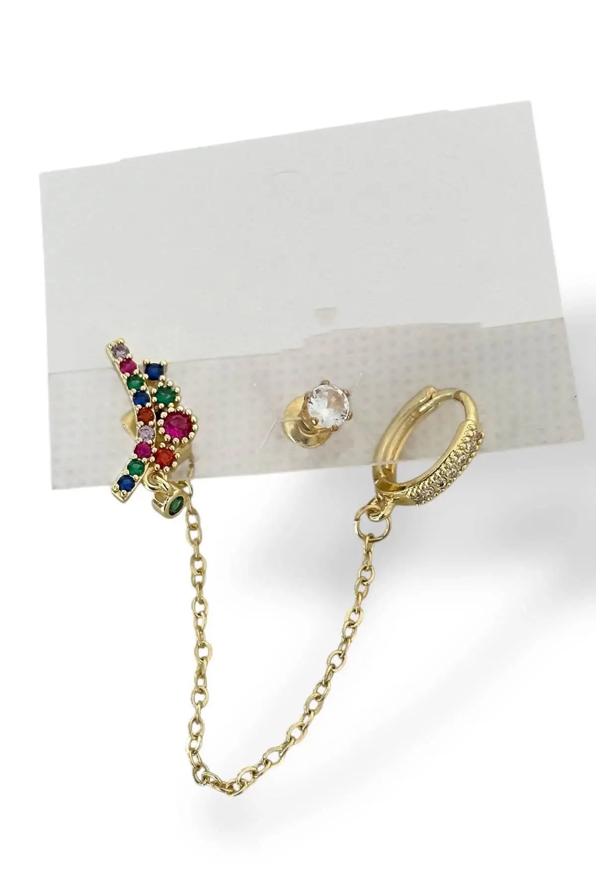 Altın Renk Taş Detaylı 3'lü YSX Küpe Set