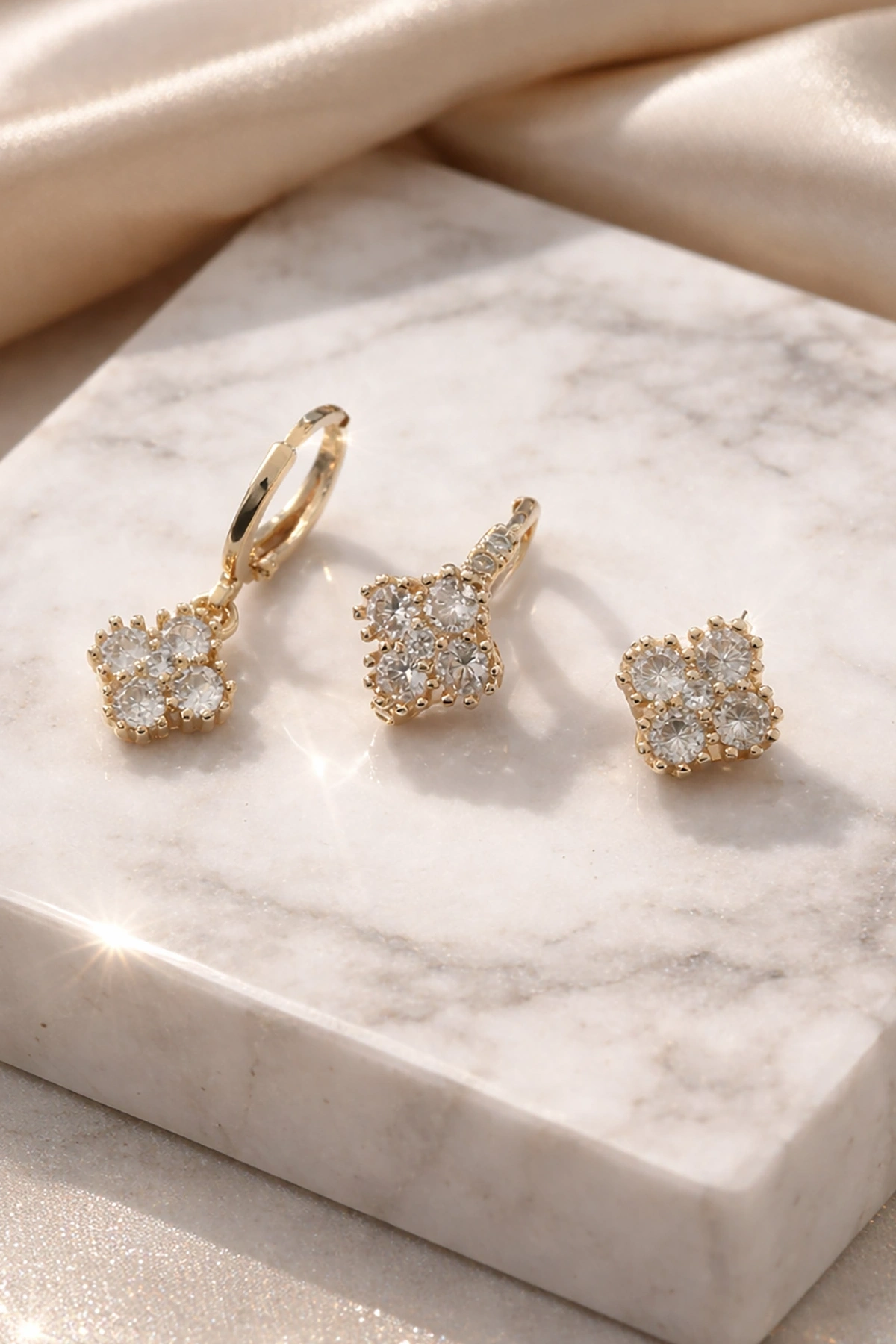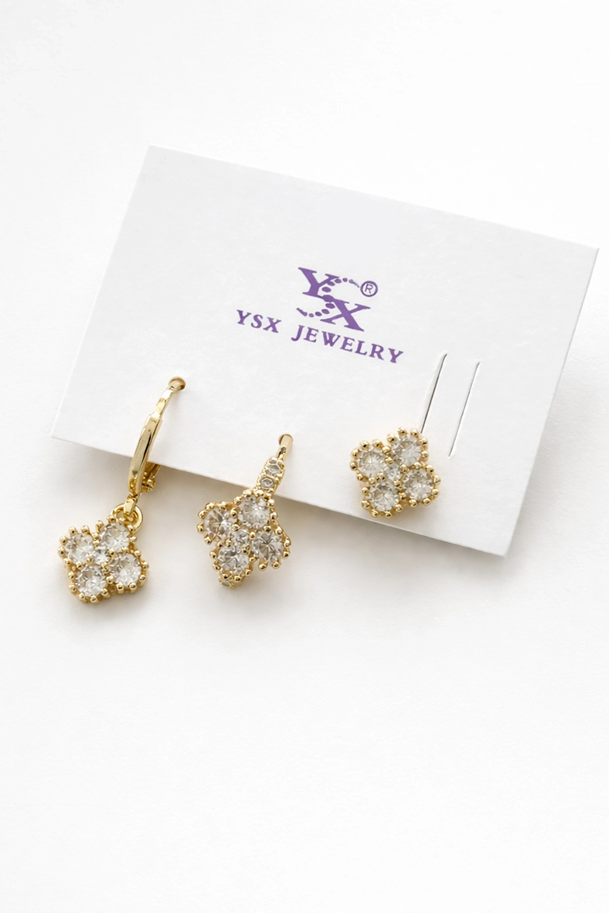 Altın Renk Taş Detaylı 3'lü YSX Küpe Set