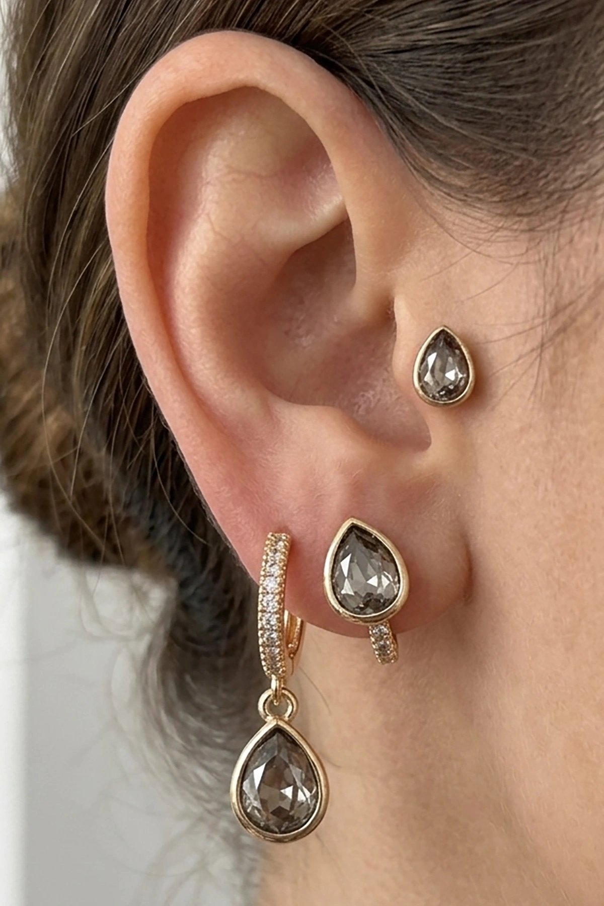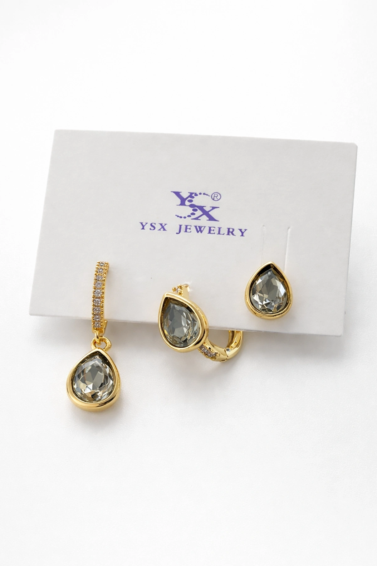 Altın Renk Taş Detaylı 3'lü YSX Küpe Set