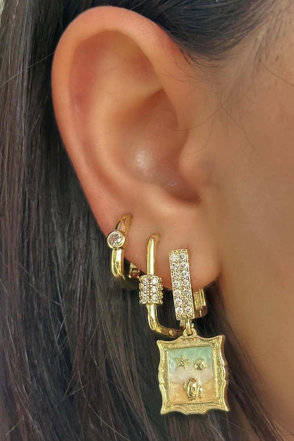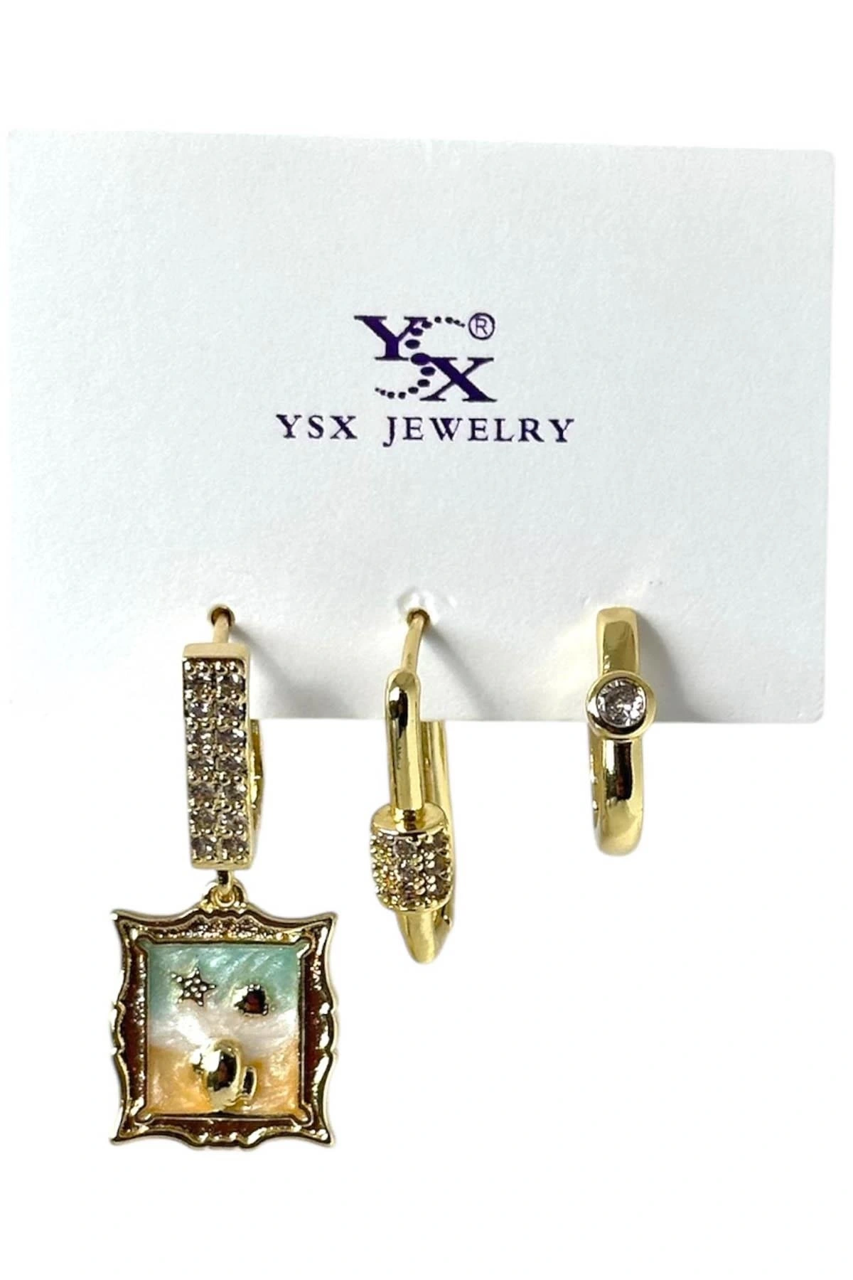 Altın Renk Taş Detaylı 3'lü YSX Küpe Set