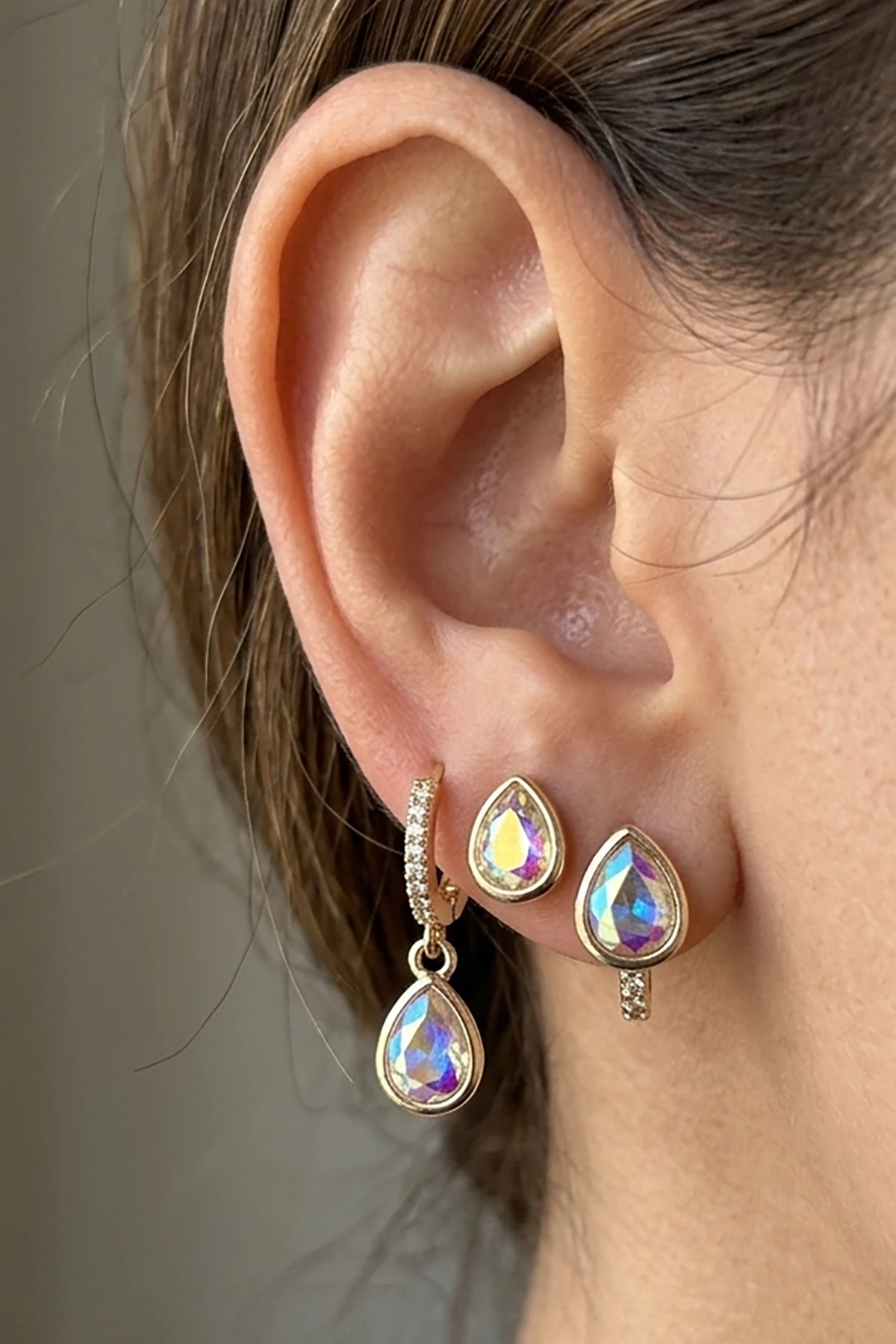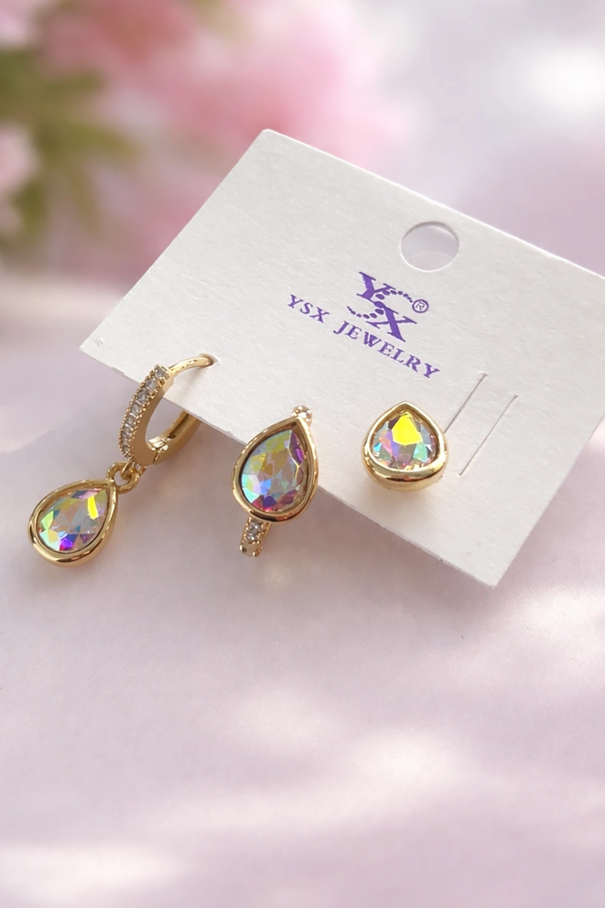 Altın Renk Taş Detaylı 3'lü YSX Küpe Set