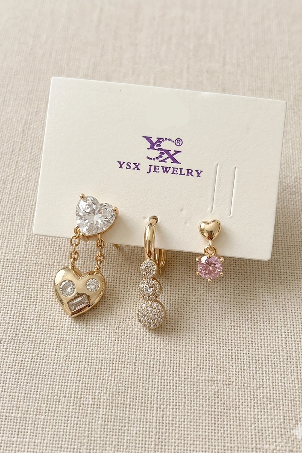 Altın Renk Taş Detaylı 3'lü YSX Küpe Set