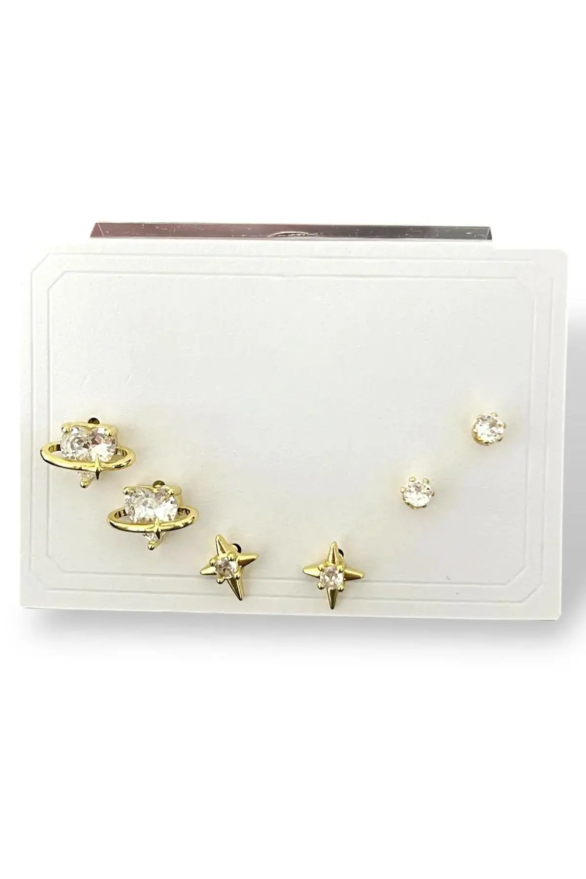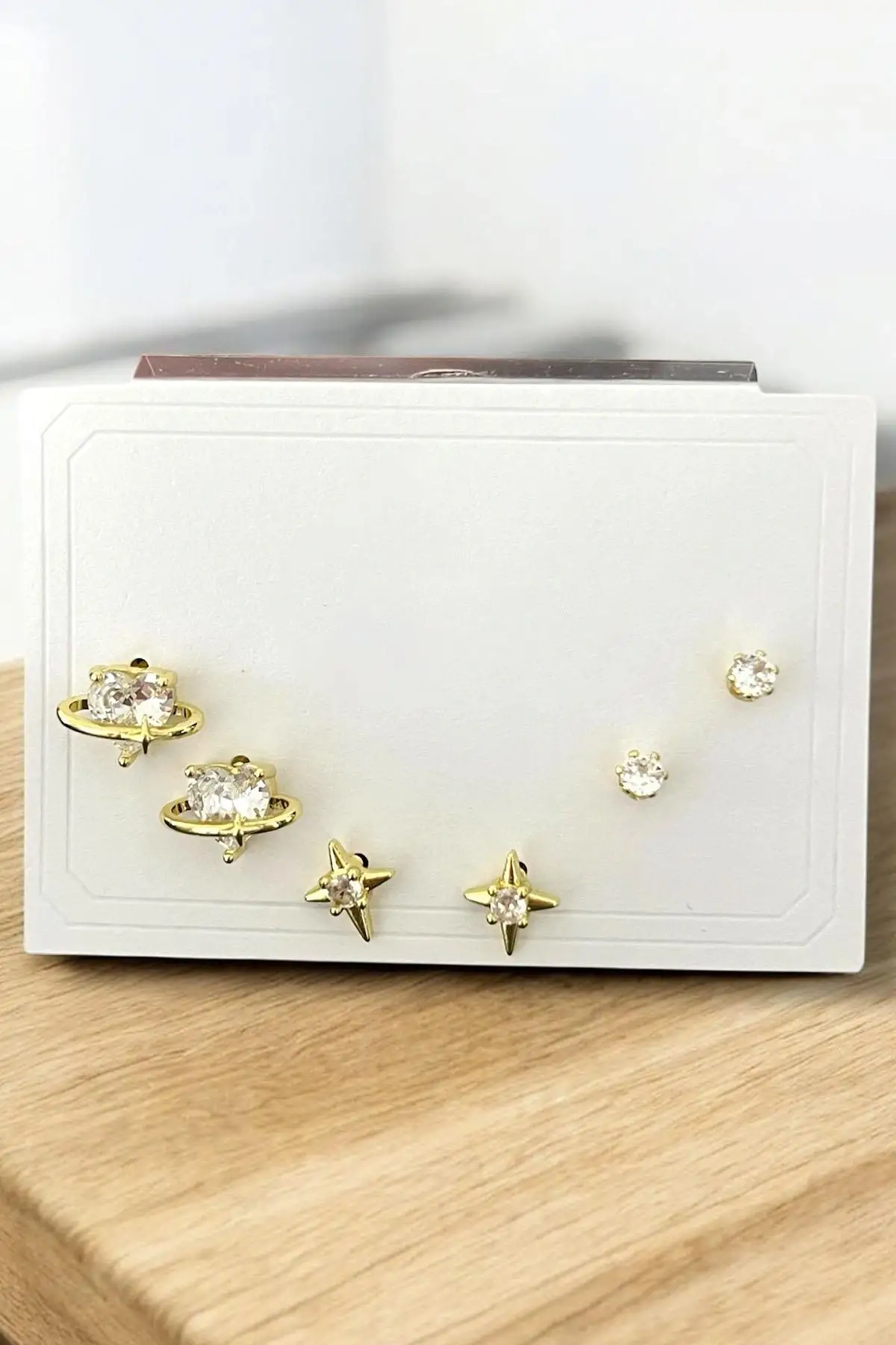 Altın Renk Taş Detaylı 6'lı Küpe Set