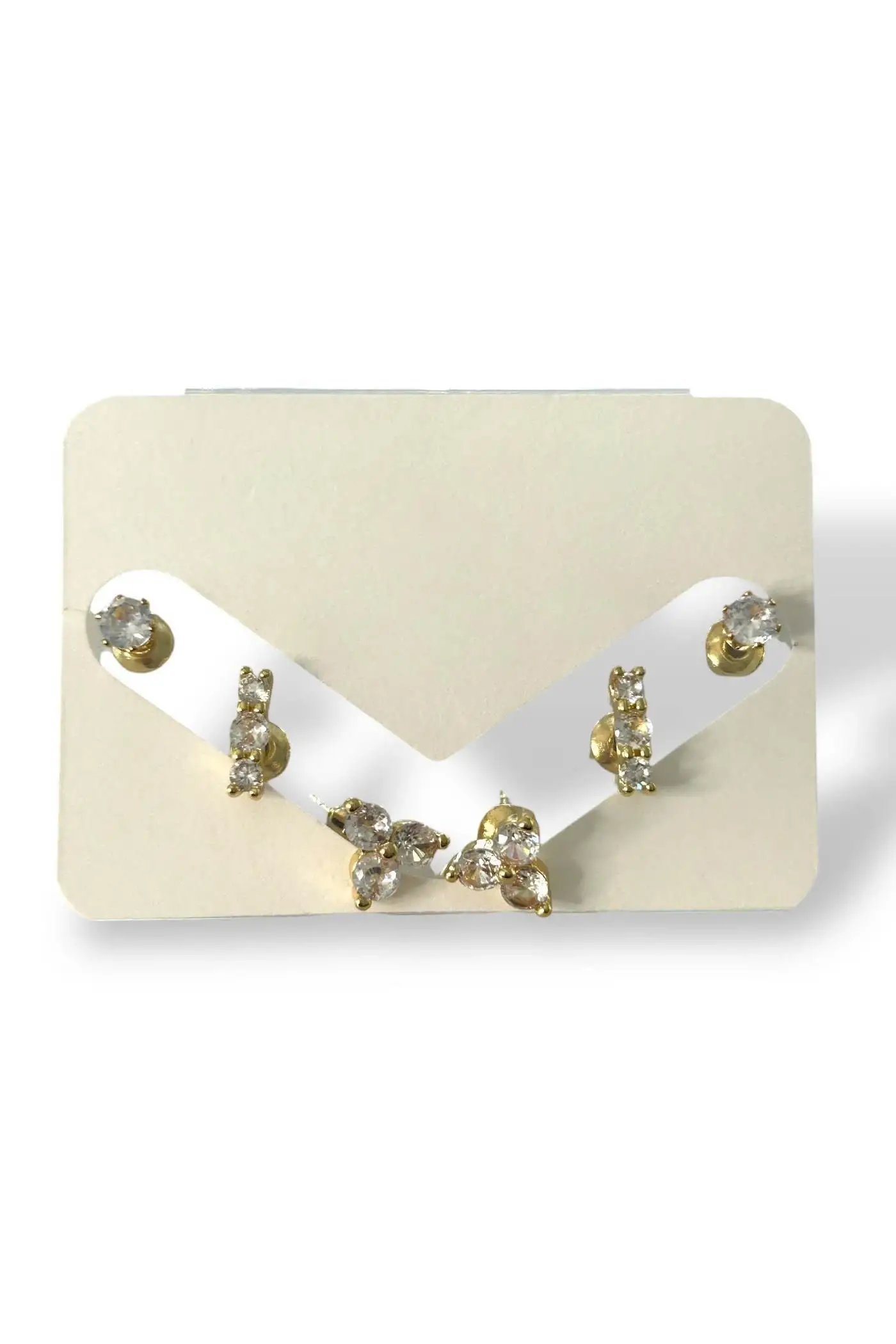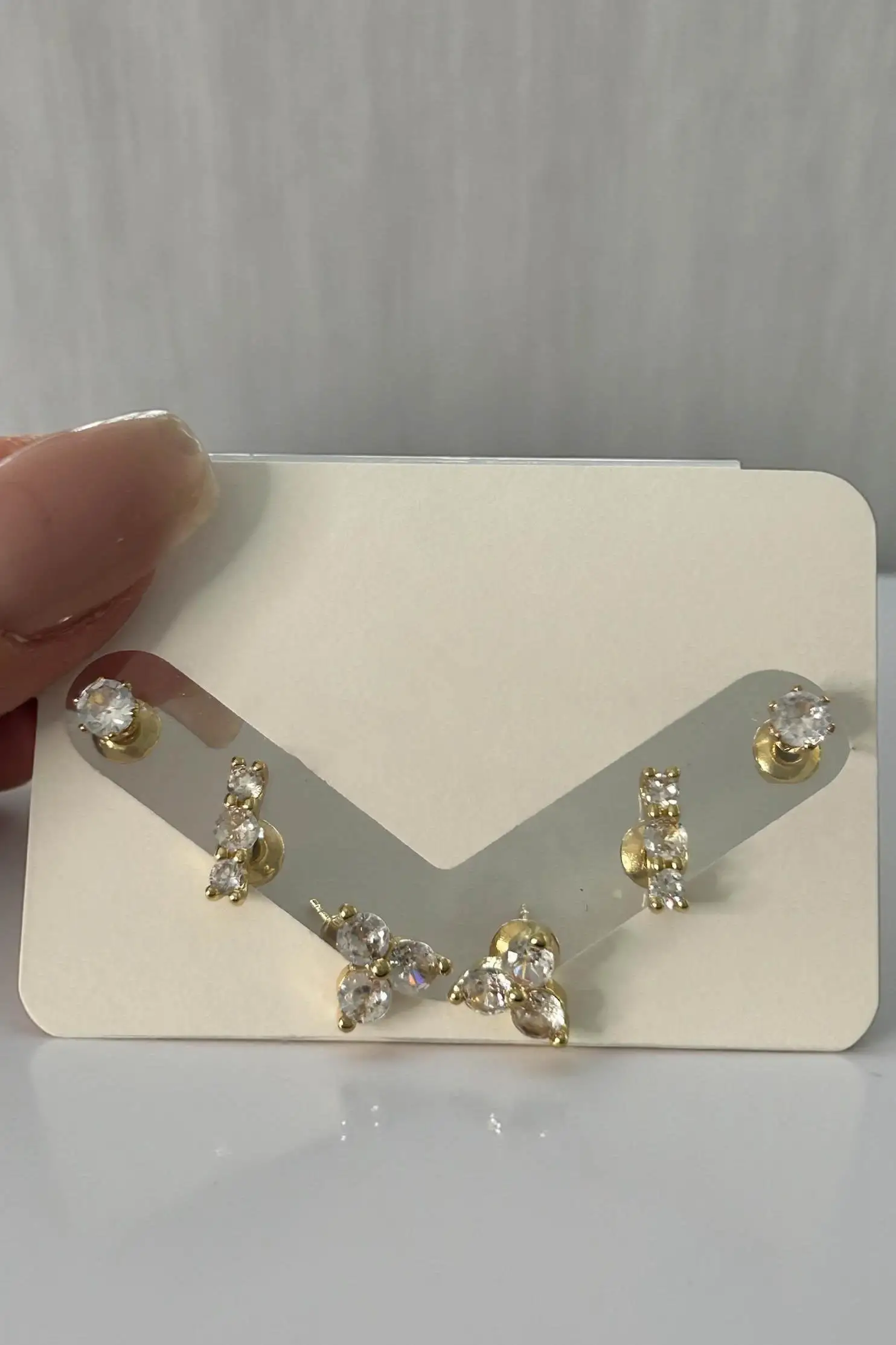 Altın Renk Taş Detaylı 6'lı Küpe Set