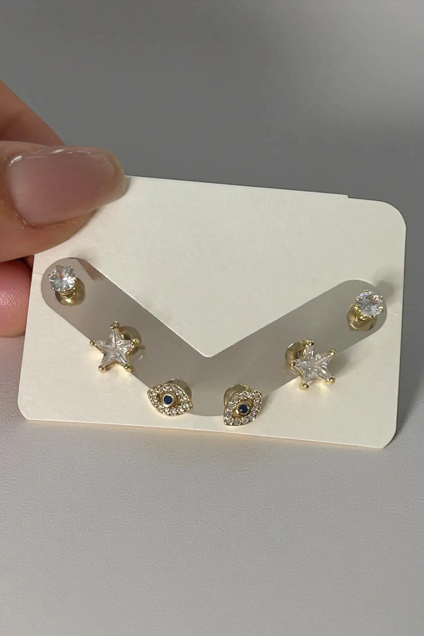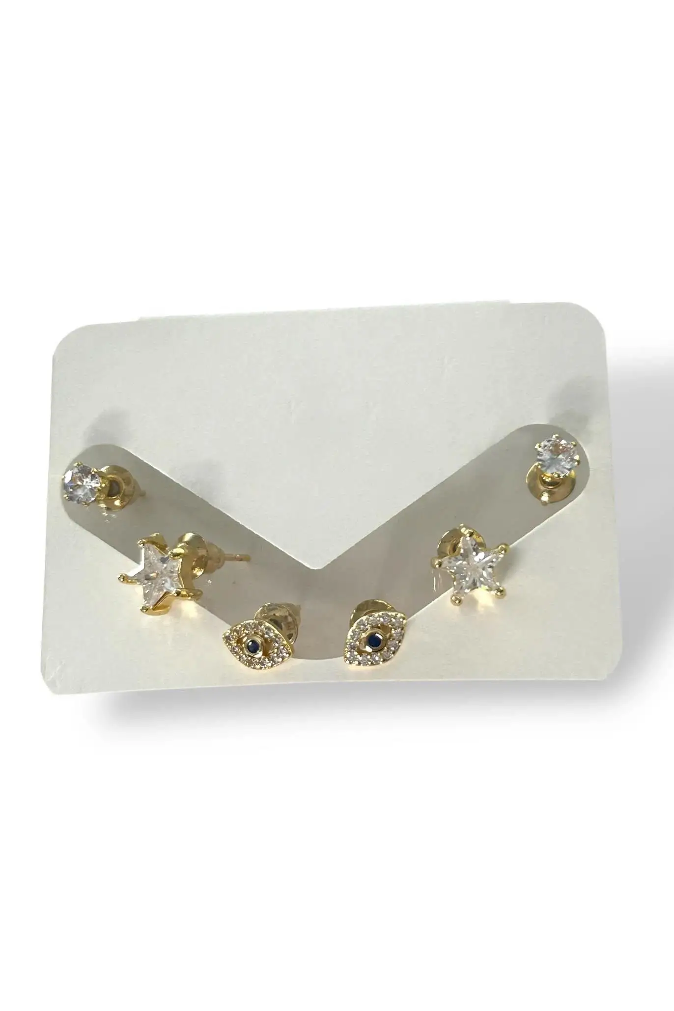 Altın Renk Taş Detaylı 6'lı Küpe Set