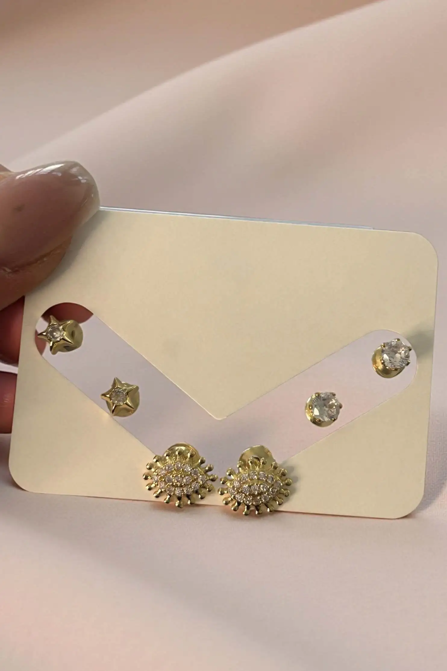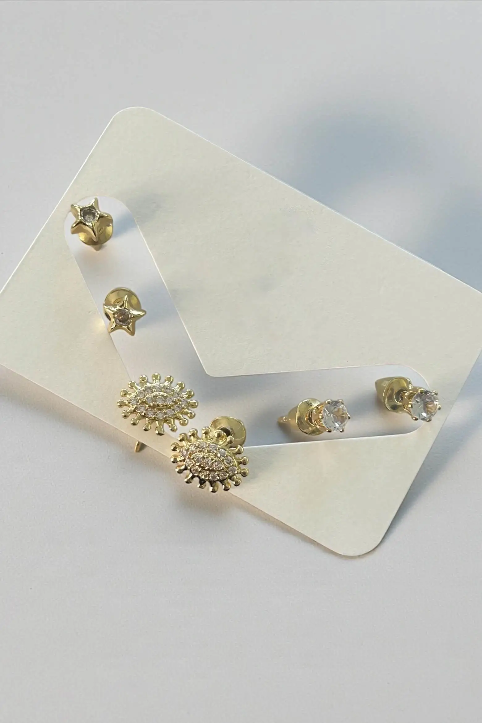 Altın Renk Taş Detaylı 6'lı Küpe Set
