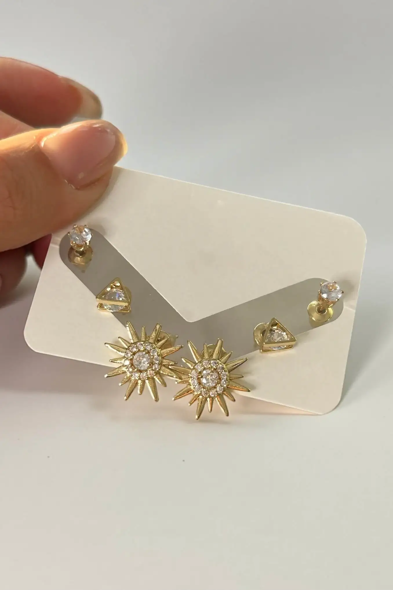 Altın Renk Taş Detaylı 6'lı Küpe Set