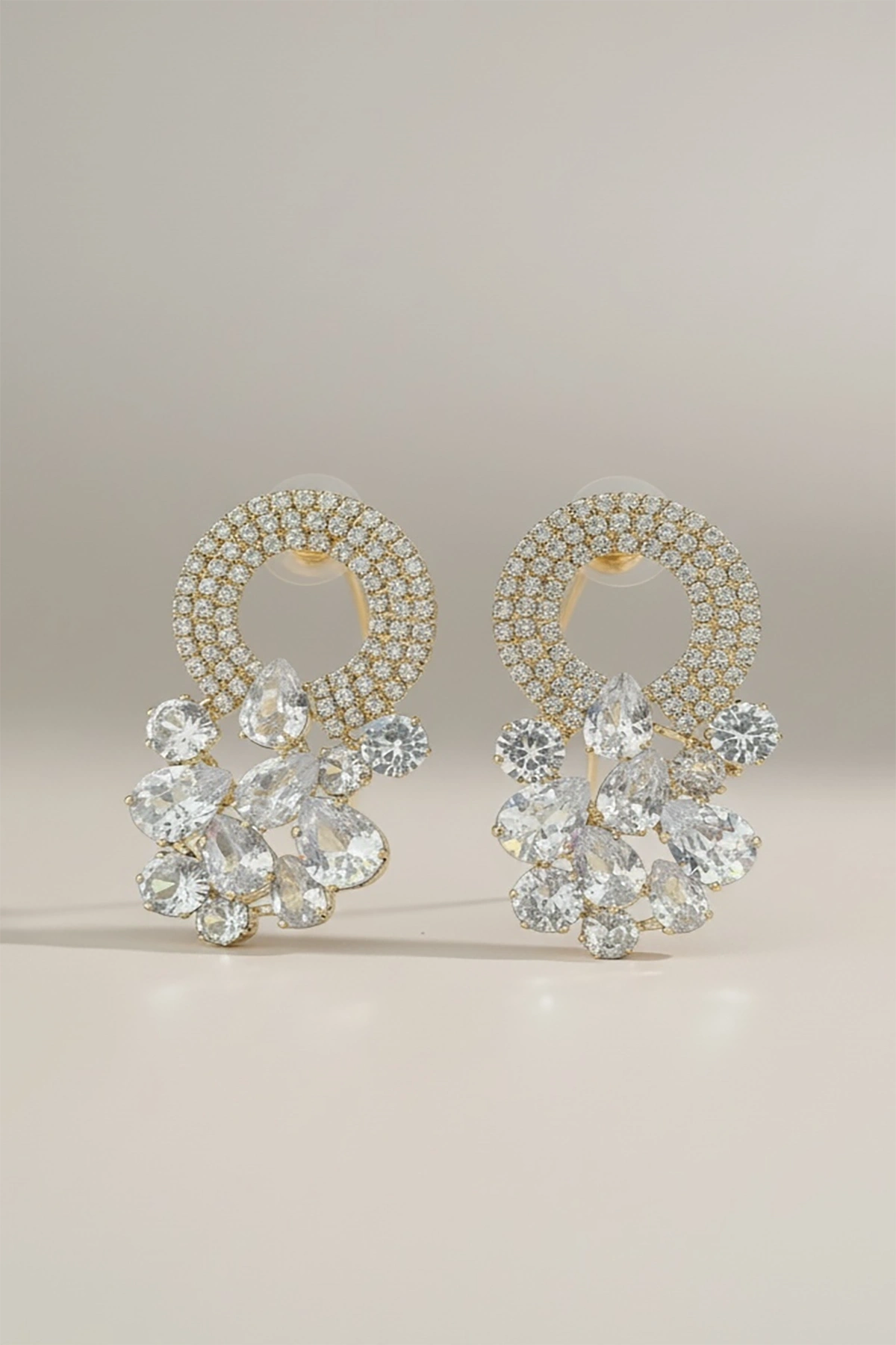 Altın Renk Taş Detaylı Abiye Küpe (Çift)