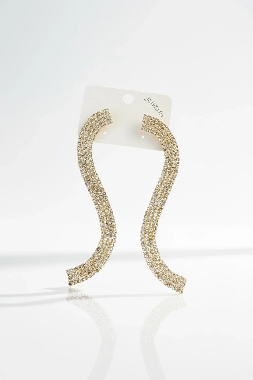 Altın Renk Taş Detaylı Abiye Küpe (Çift)