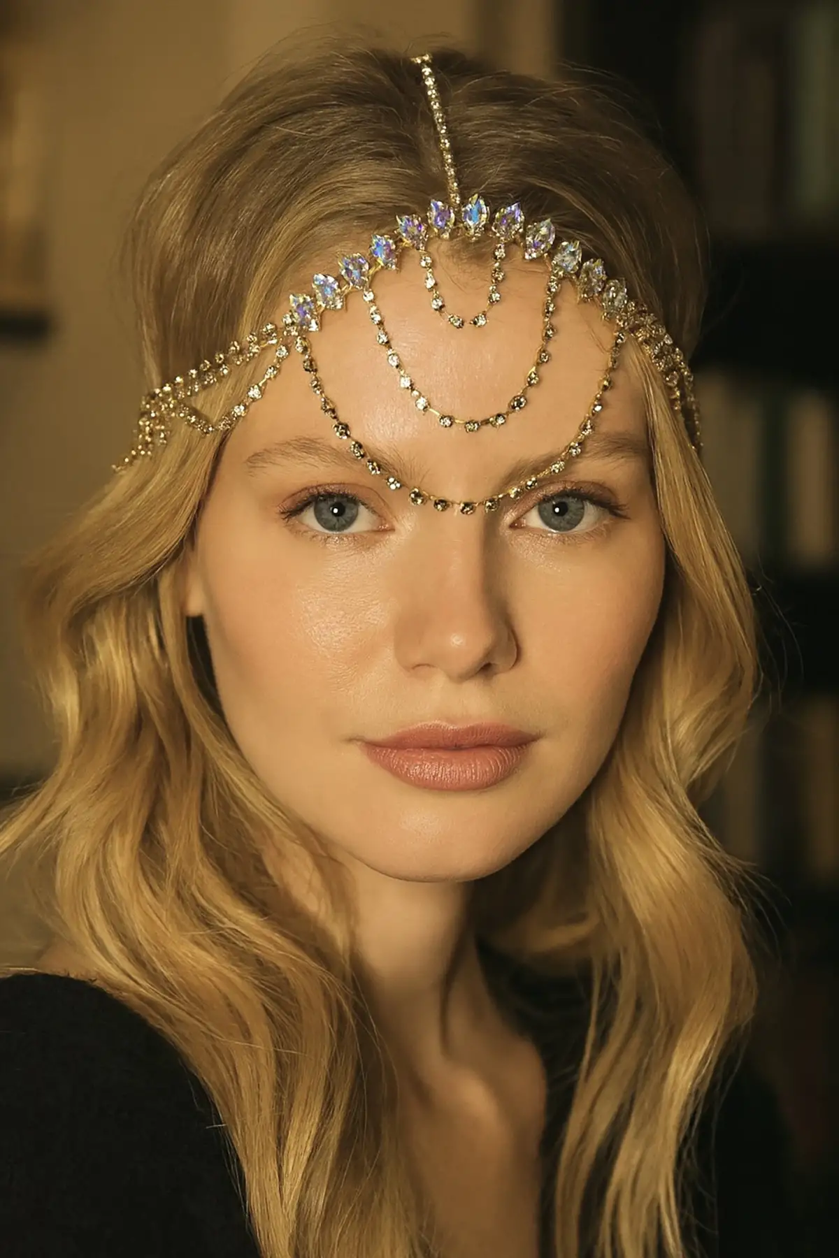 Altın Renk Taş Detaylı Alınlık/Kına Aksesuarı