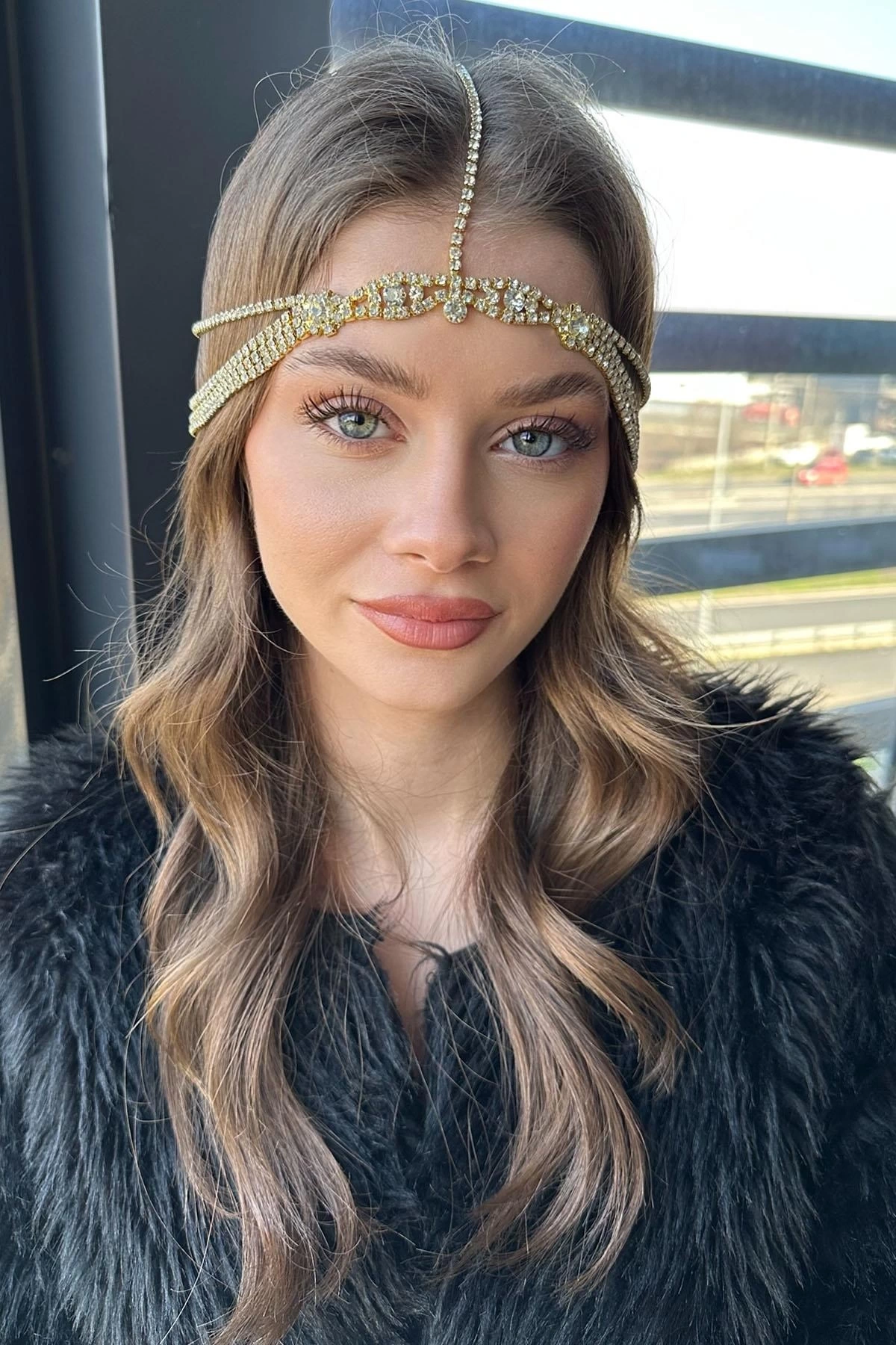 Altın Renk Taş Detaylı Alınlık/Kına Aksesuarı