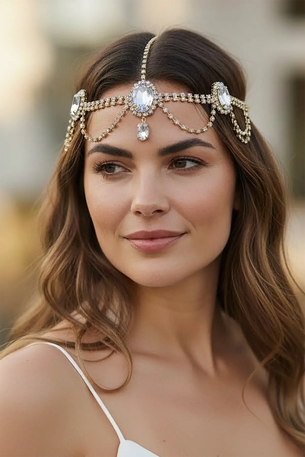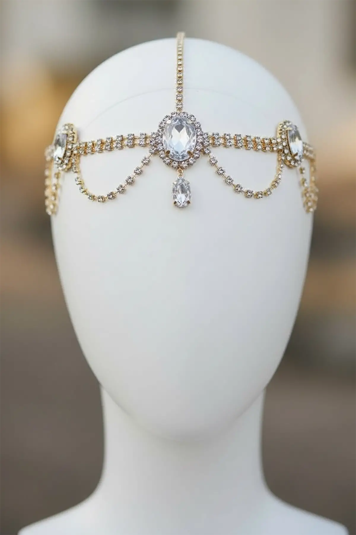 Altın Renk Taş Detaylı Alınlık/Kına Aksesuarı