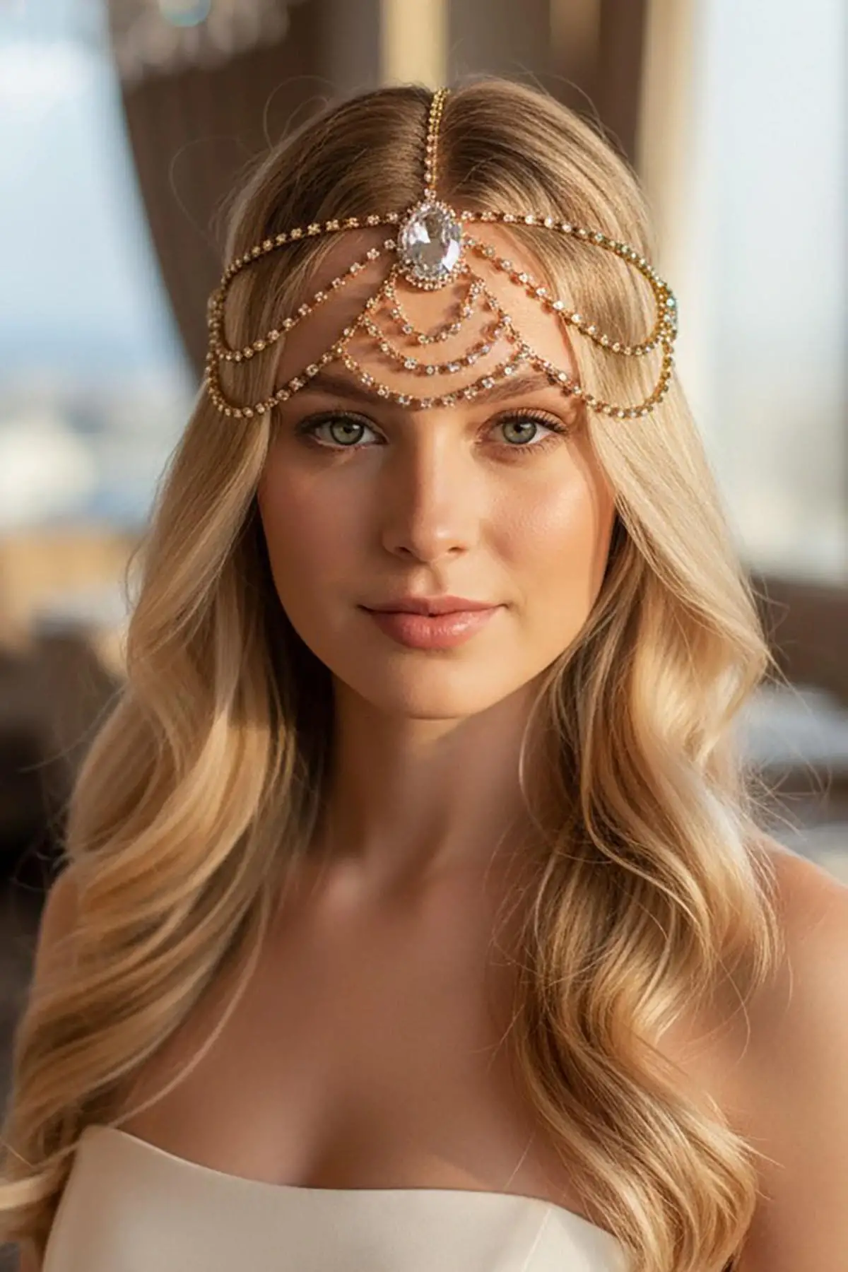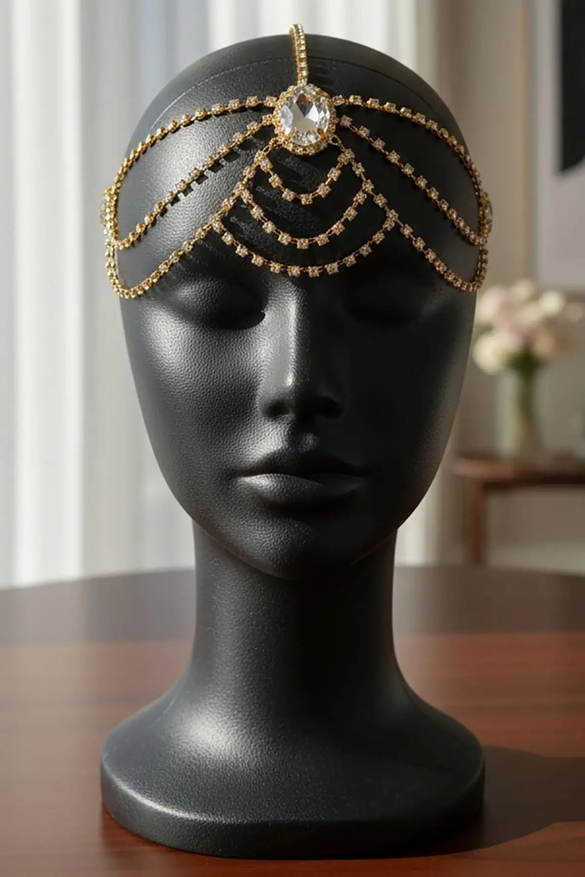 Altın Renk Taş Detaylı Alınlık/Kına Aksesuarı