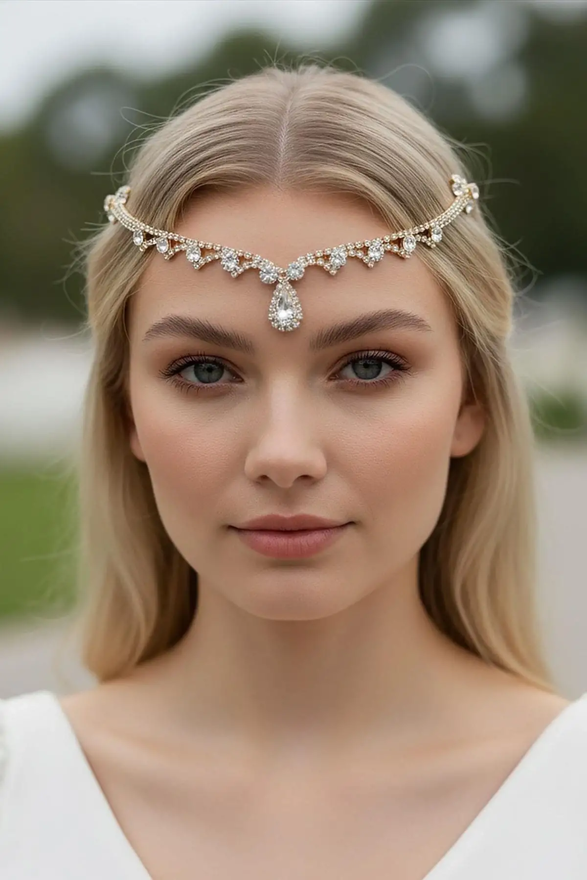 Gümüş Renk Taş Detaylı Alınlık/Kına Aksesuarı