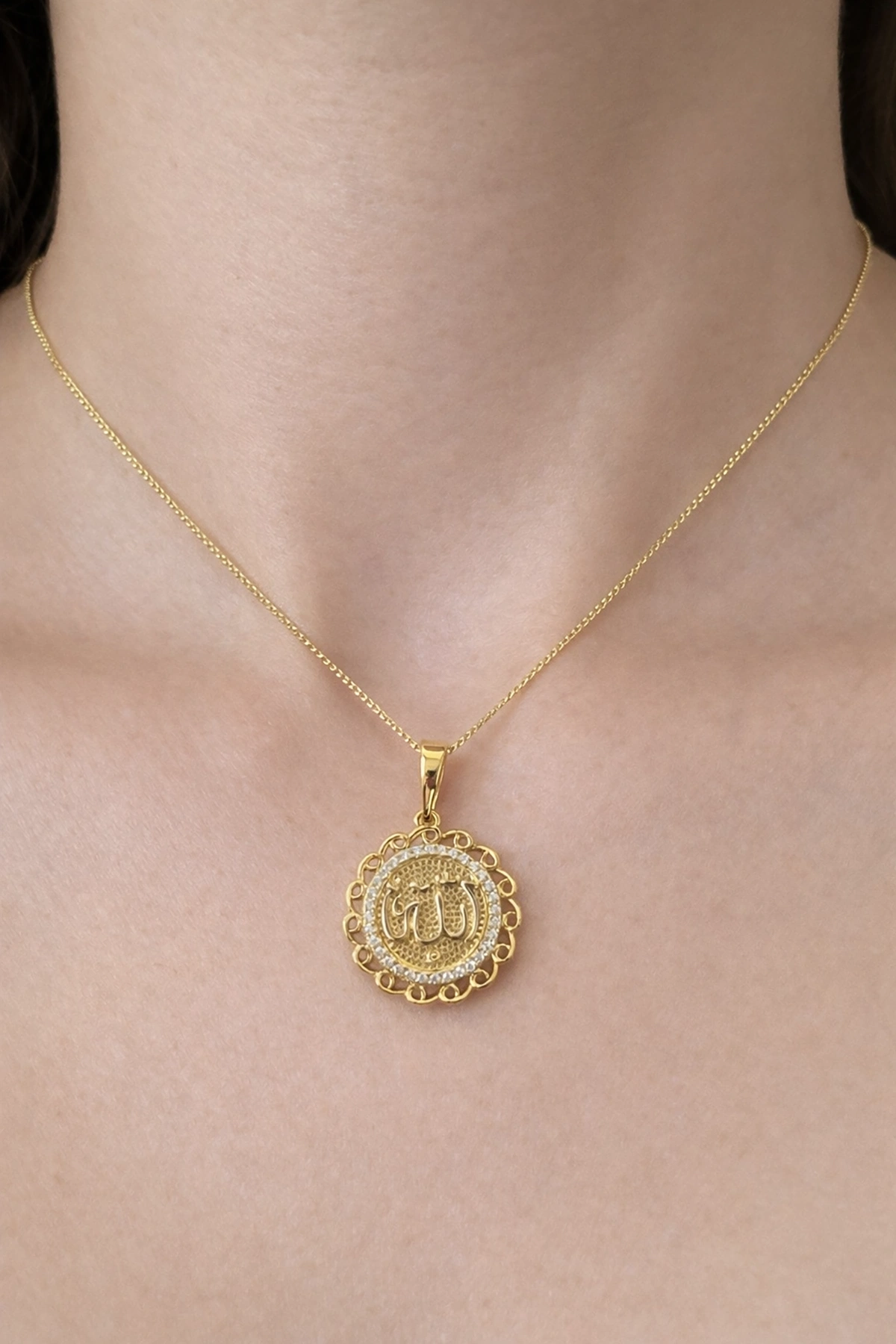 Altın Renk Taş Detaylı Allah Yazılı Çelik VİP Xuping Kolye