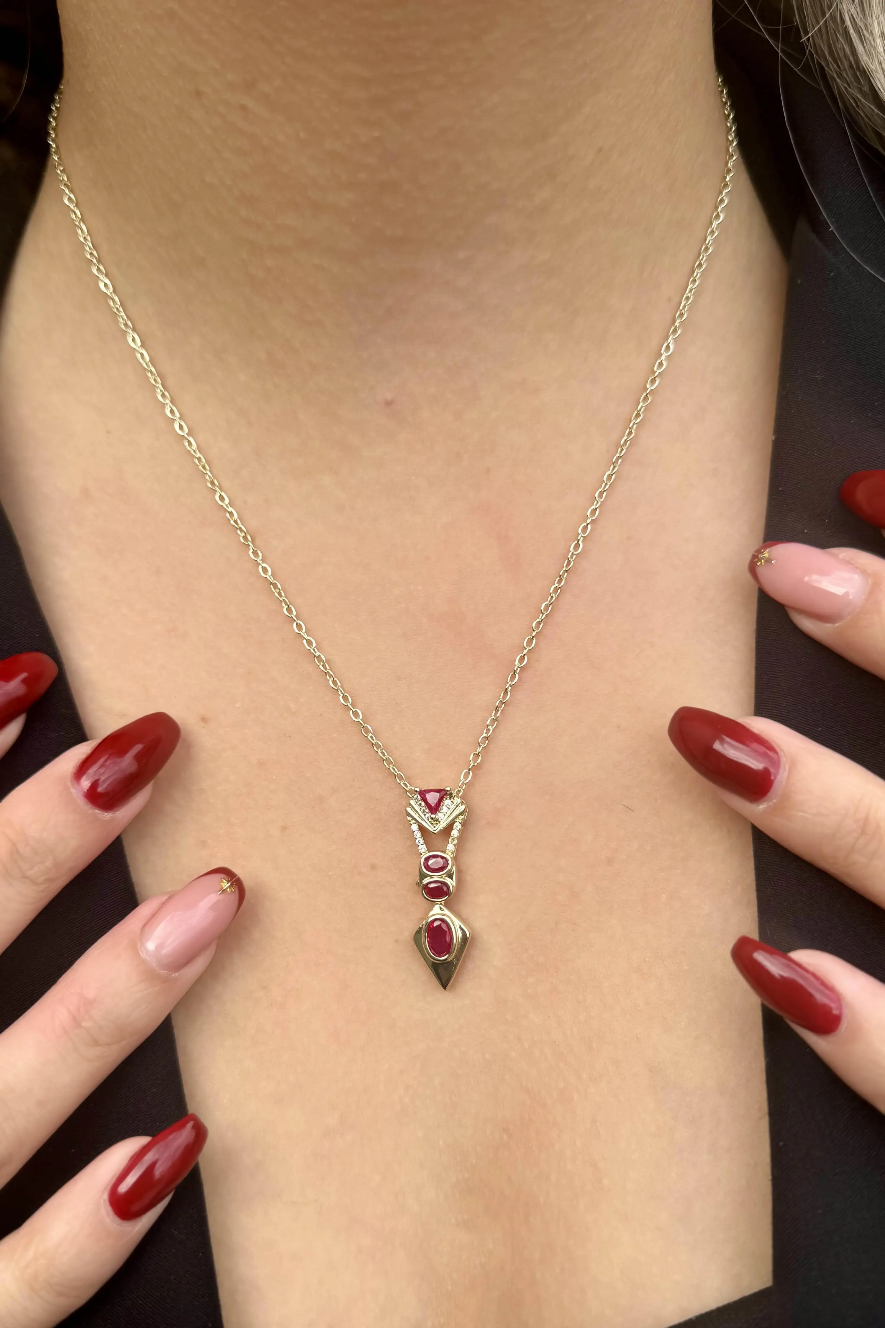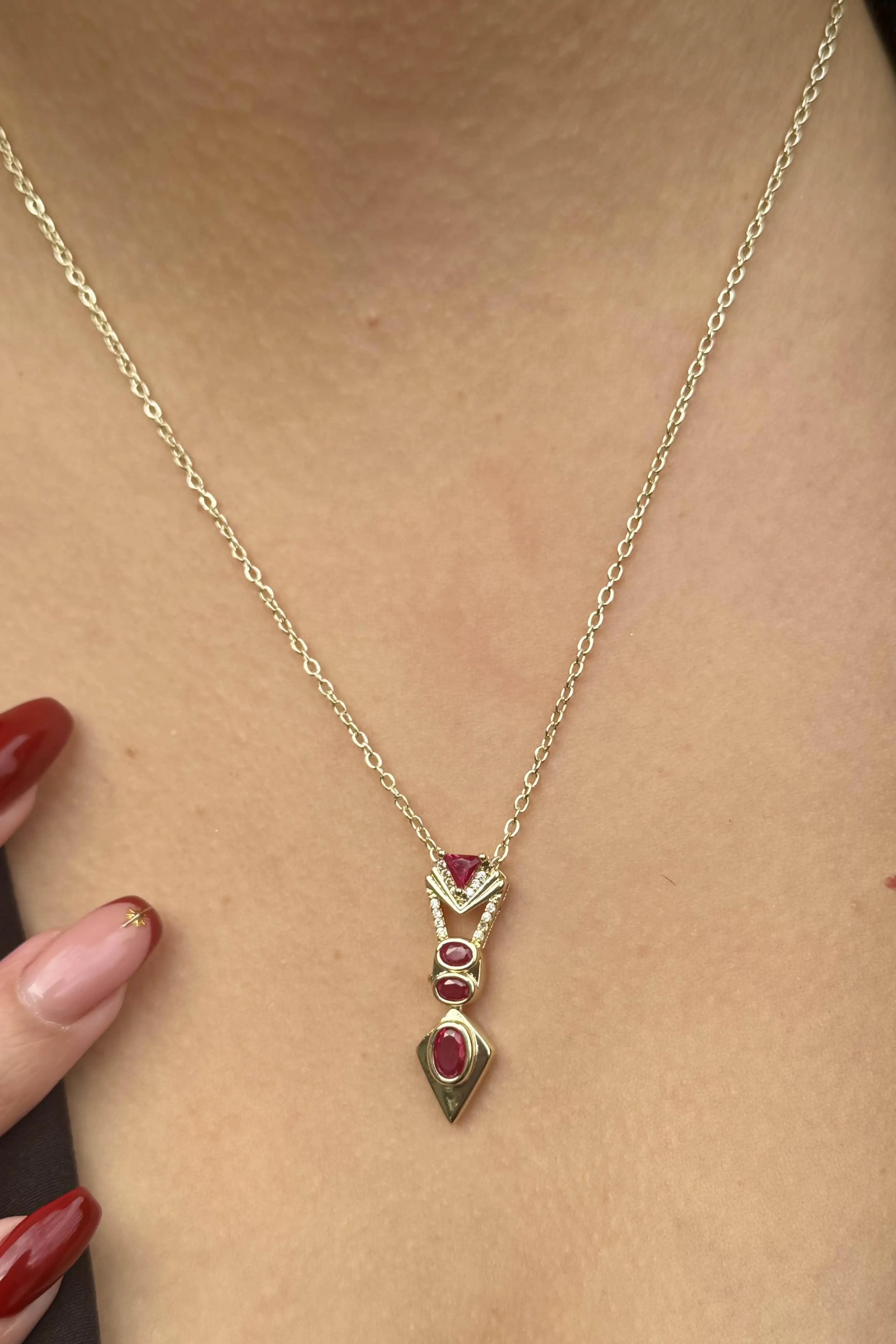 Altın Renk Taş Detaylı 14K Altın Kaplama VİP Kolye