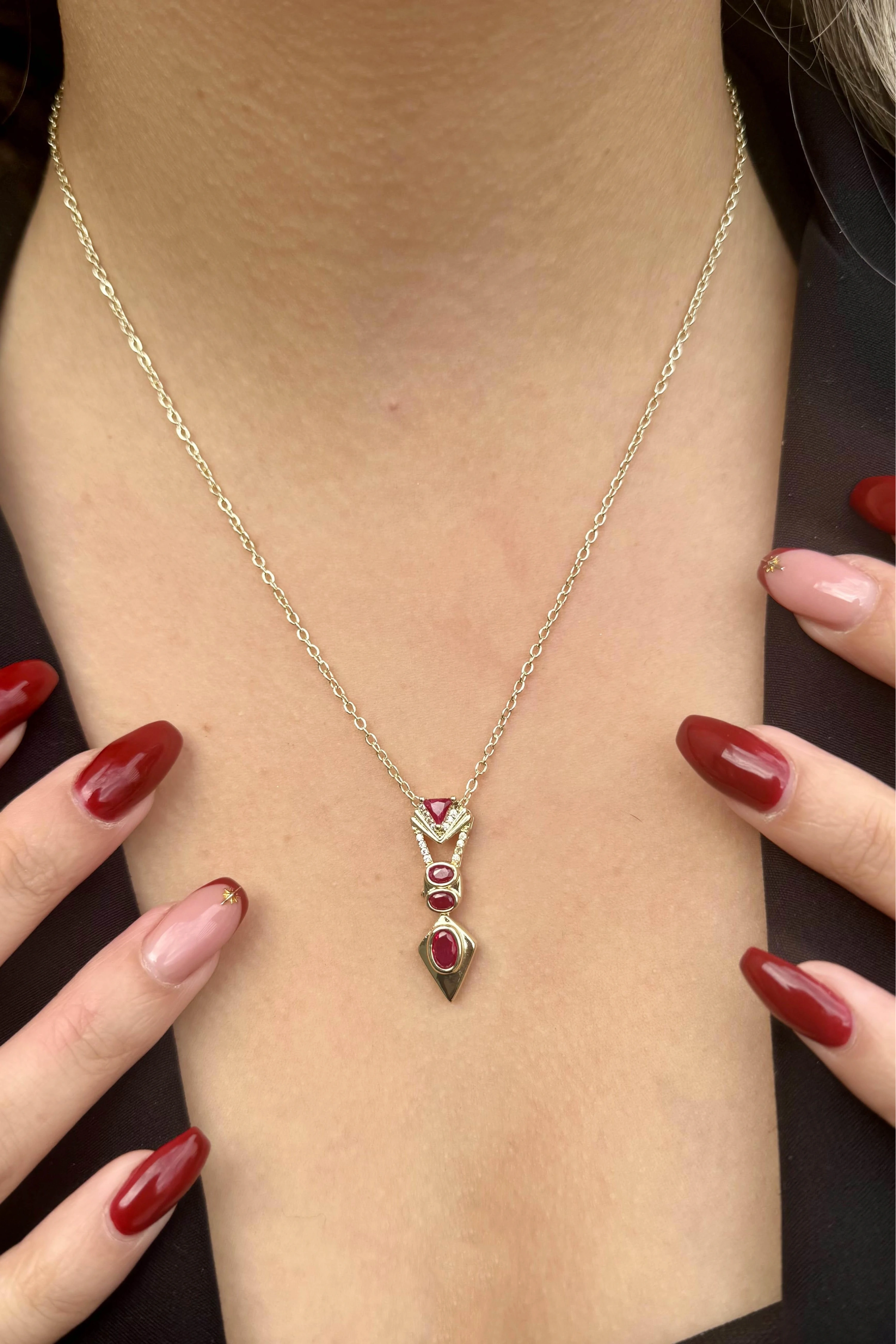 Altın Renk Taş Detaylı Altın Kaplama VİP Kolye