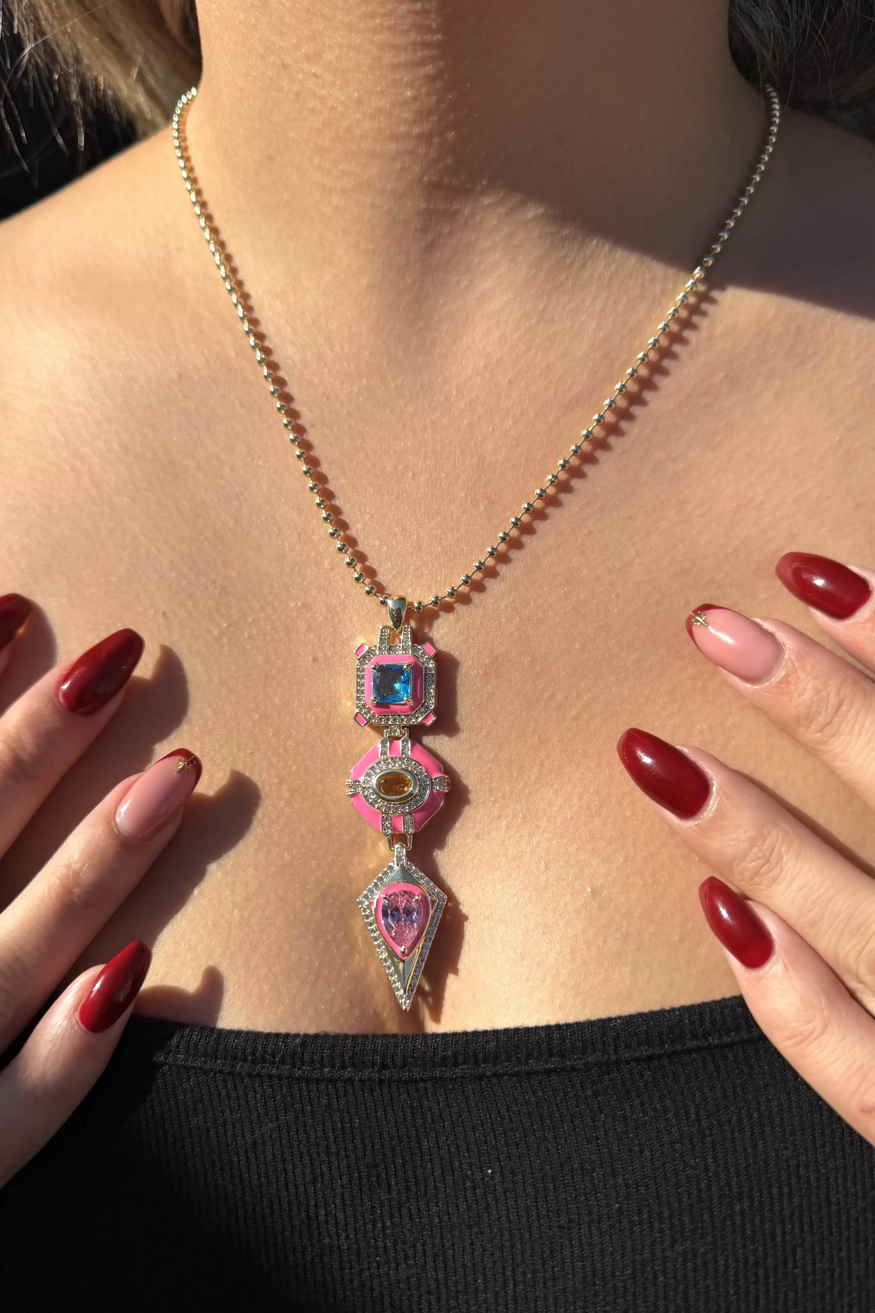 Altın Renk Taş Detaylı 14K Altın Kaplama VİP Kolye