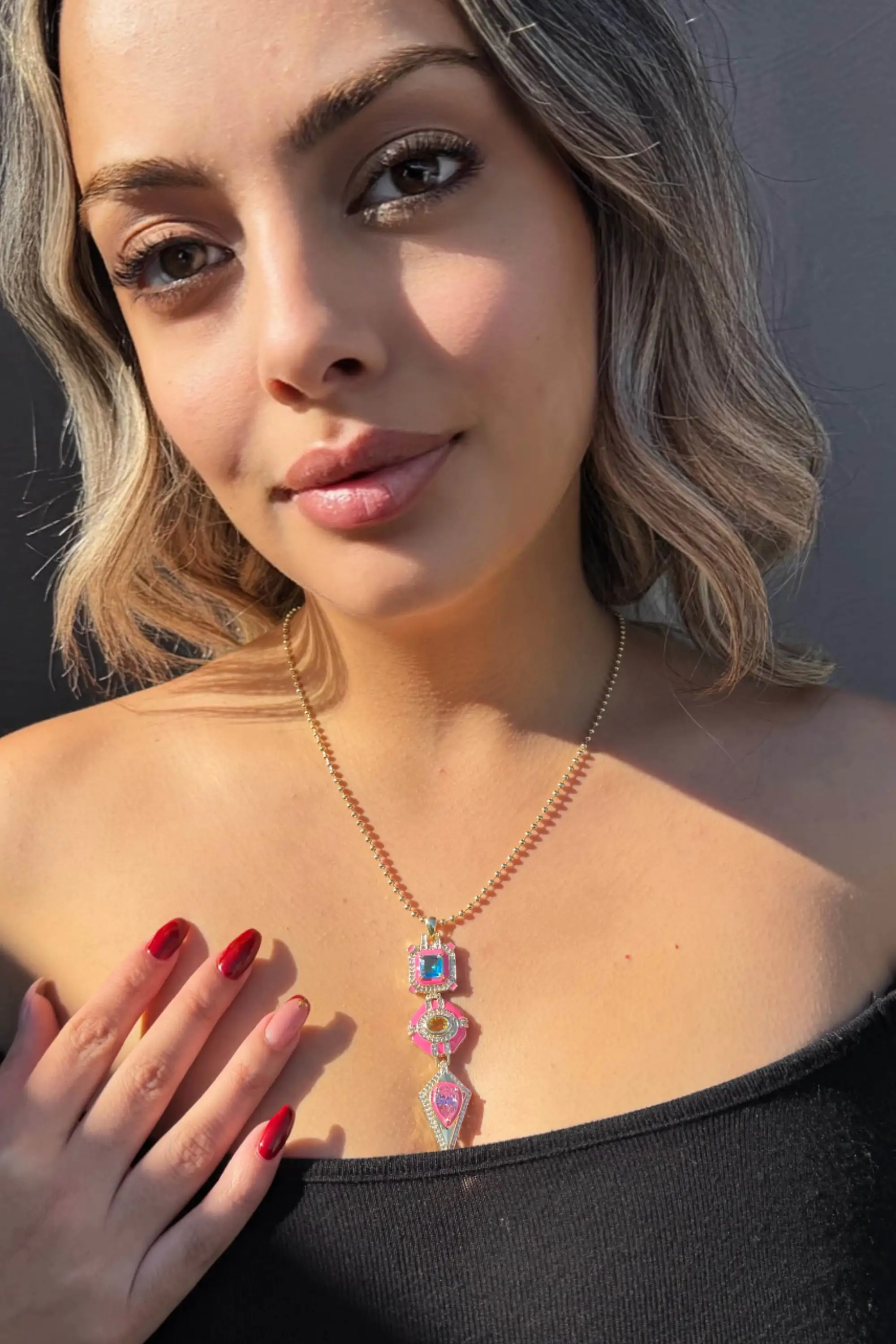 Altın Renk Yıldız Figürlü Renkli Taş Detaylı Altın Kaplama VİP Kolye
