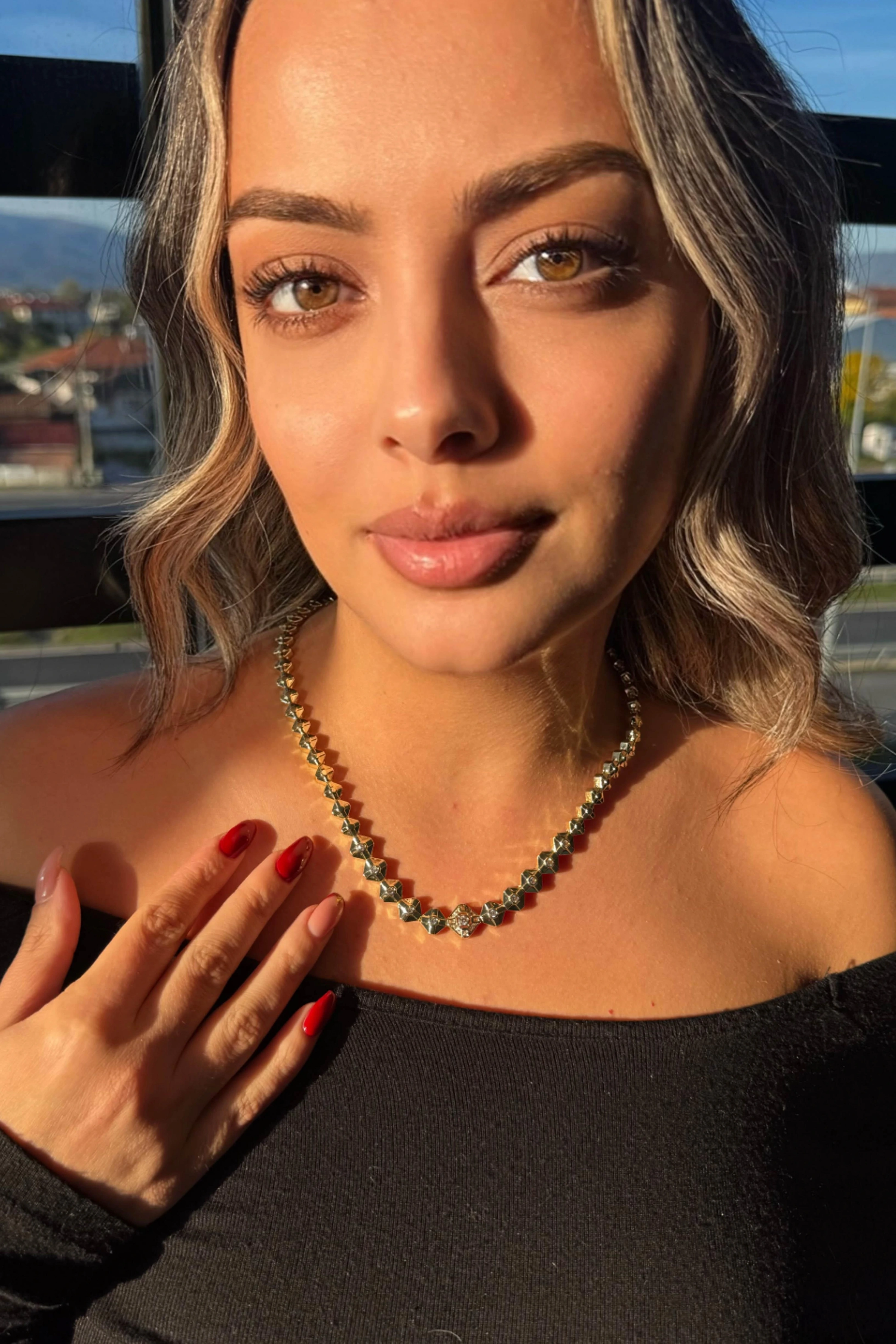 Altın Renk Taş Detaylı Altın Kaplama VİP Kolye