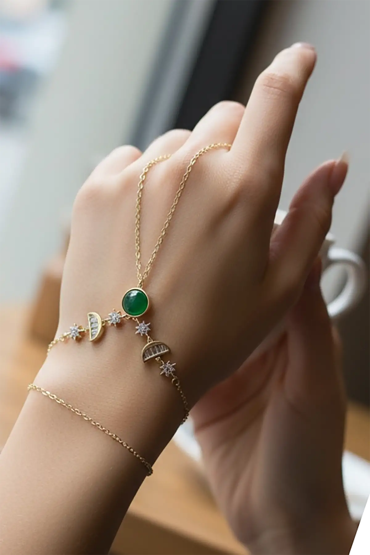 Altın Renk Taş Detaylı 14K Altın Kaplama TX Şahmeran