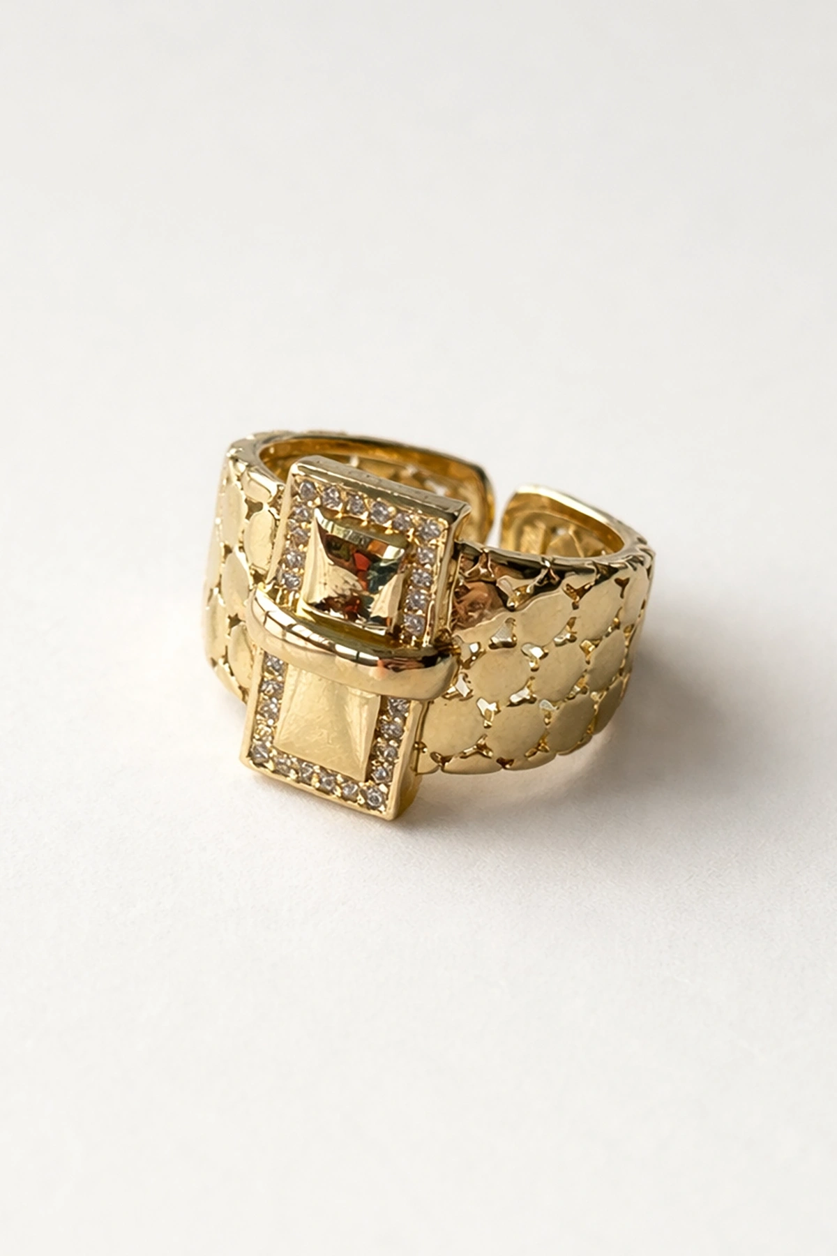 Altın Renk Taş Detaylı Ayarlanabilir Çelik Yüzük
